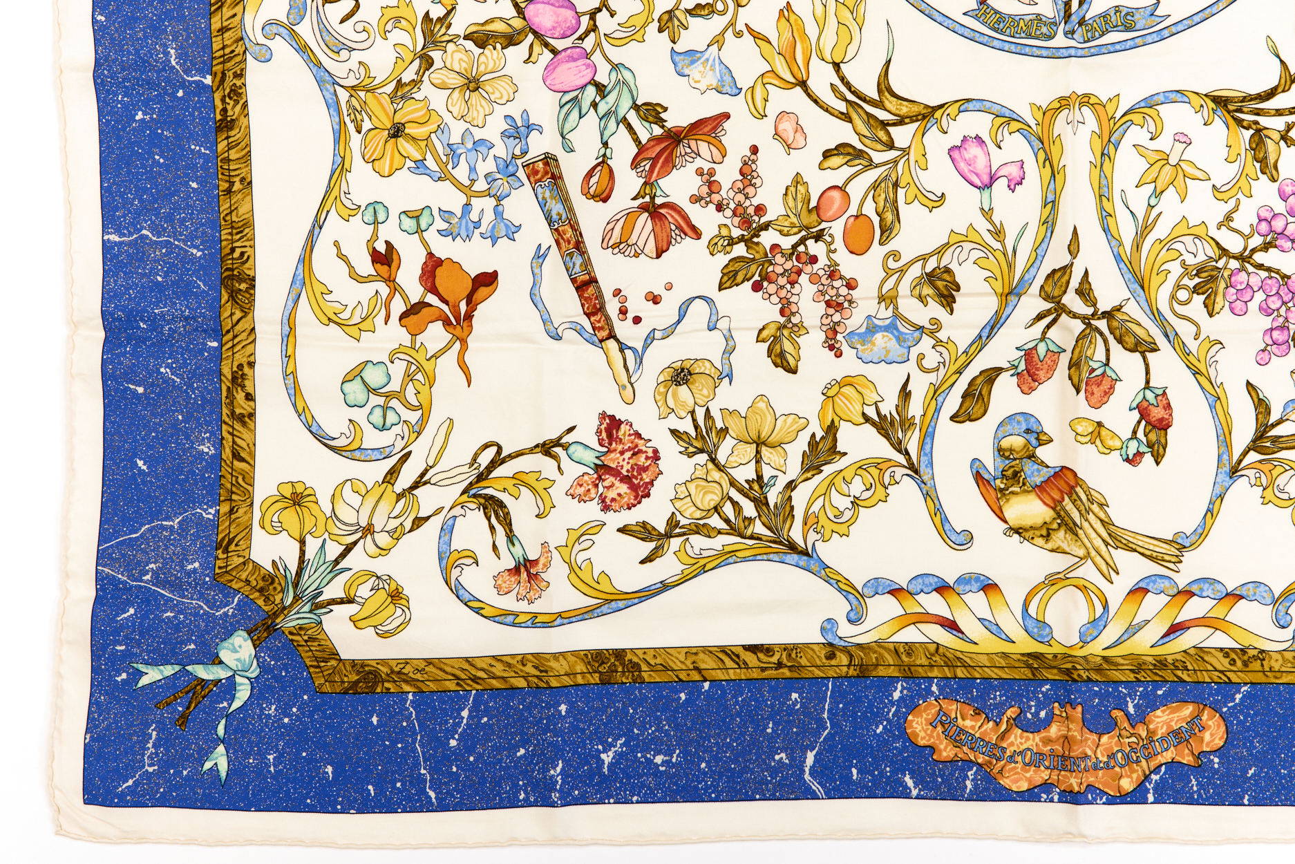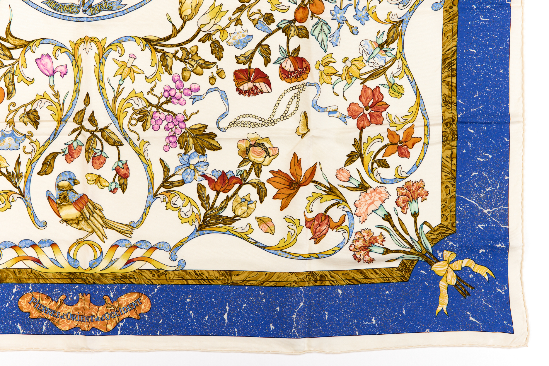 Hermes Silk Scarf Carre 90 “Pierres d’Orient et d’Occident” White Silk Scarf