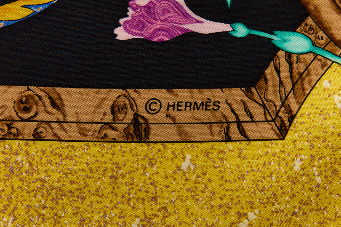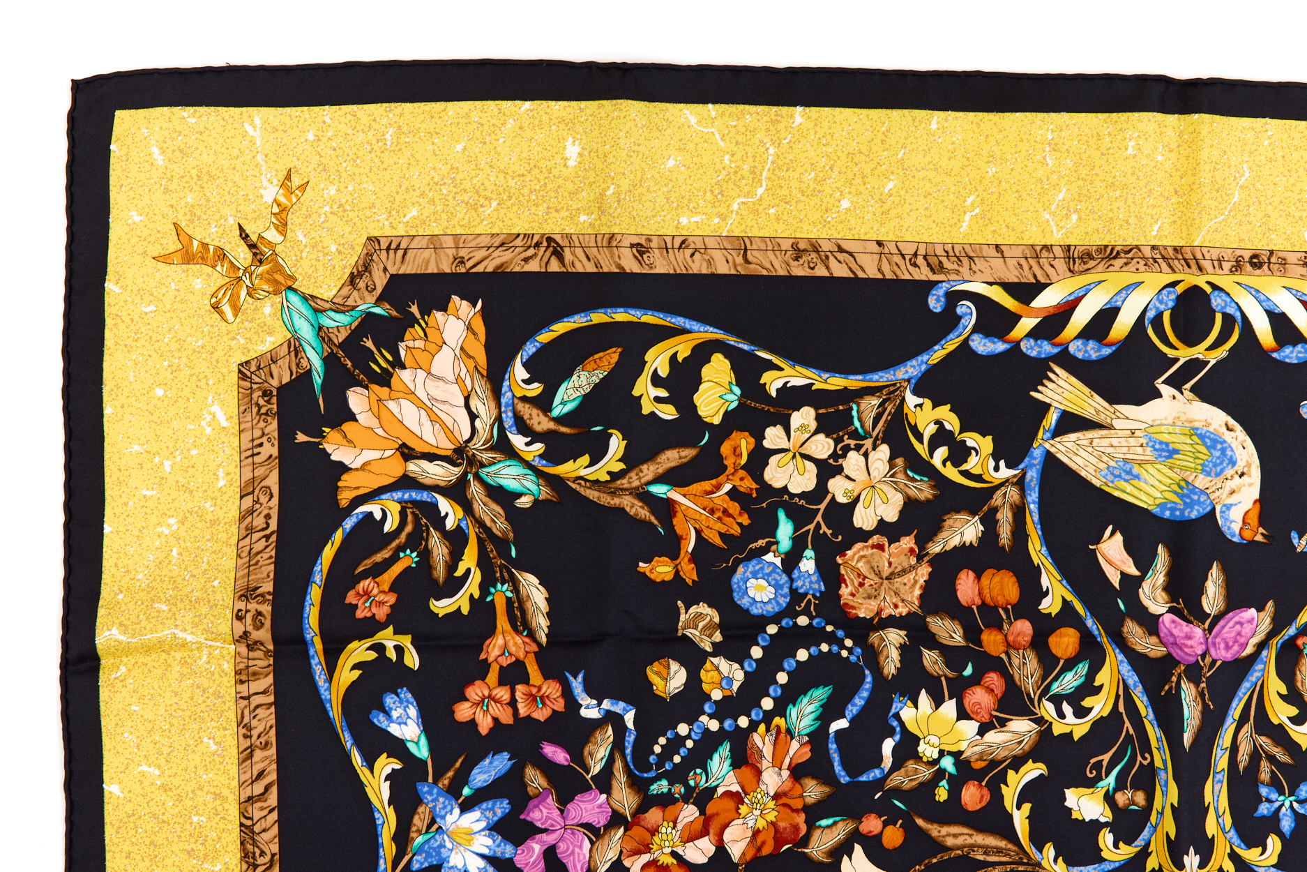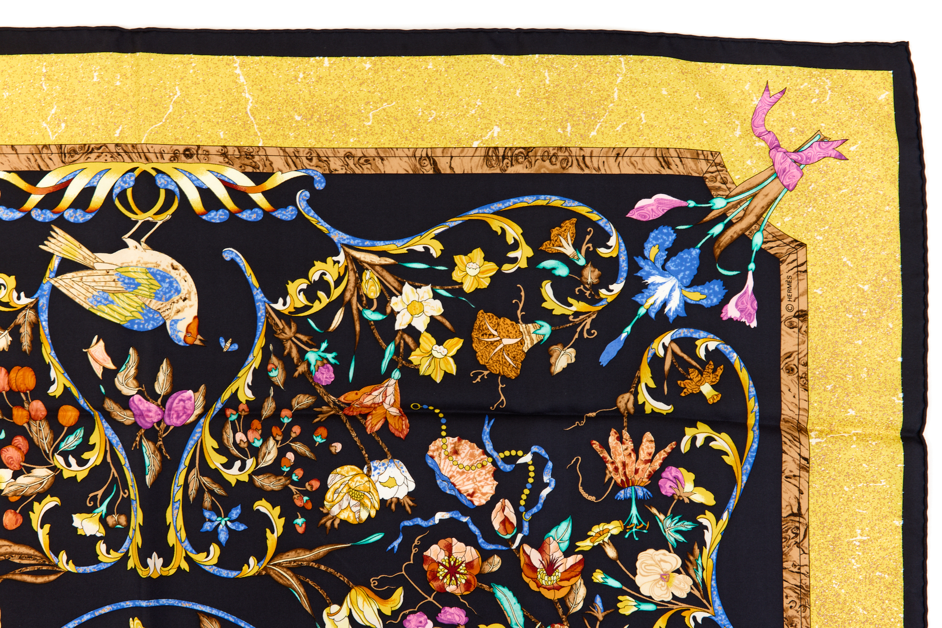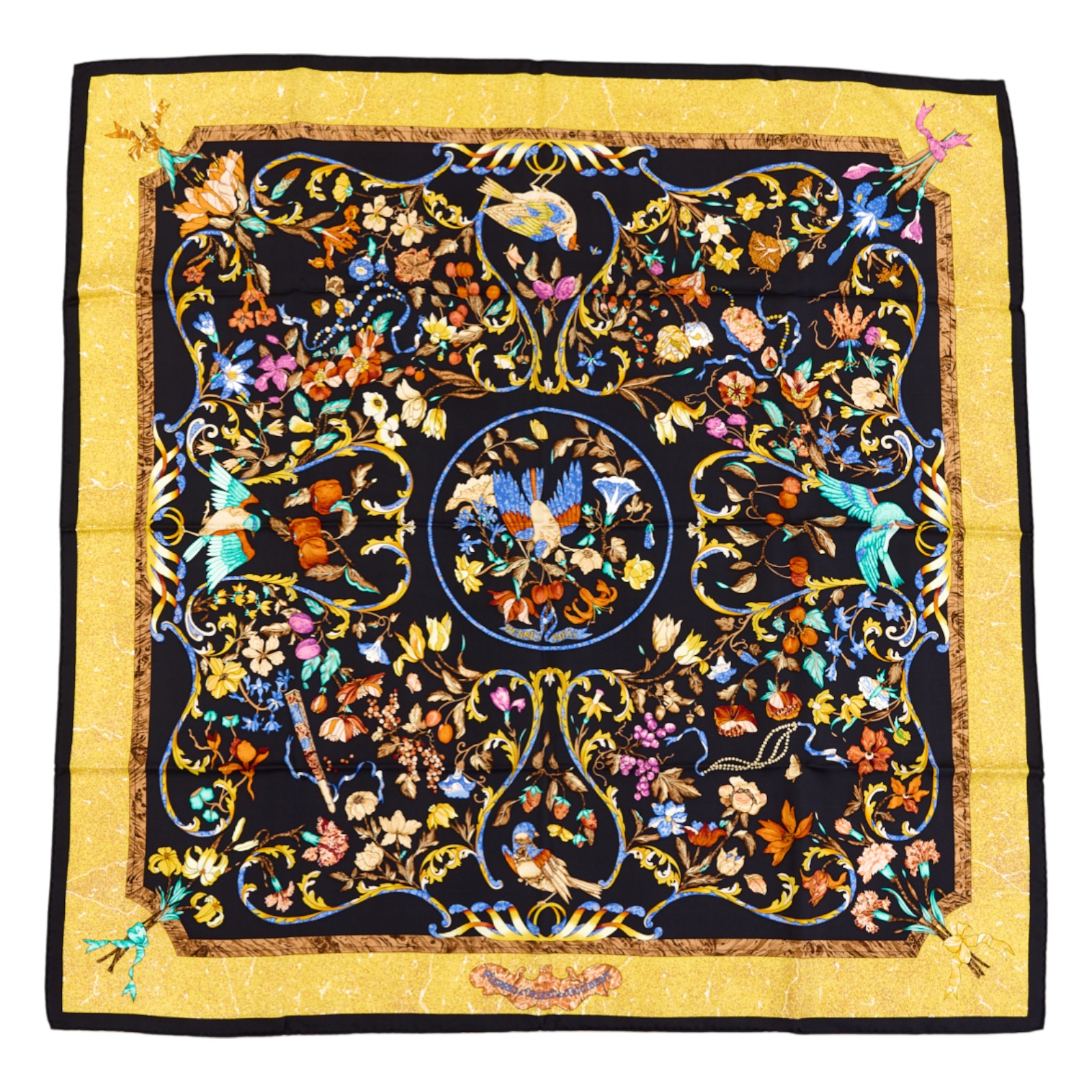 Hermes Silk Scarf Carre 90 “Pierres d’Orient et d’Occident” Yellow Silk Scarf