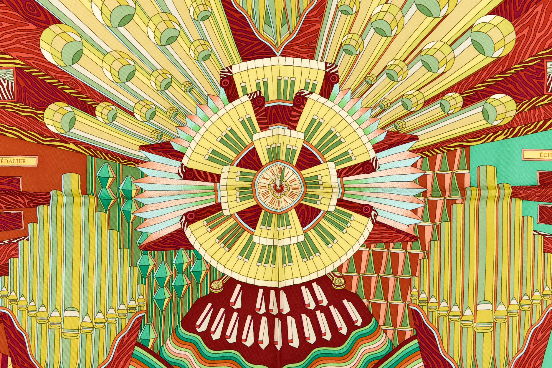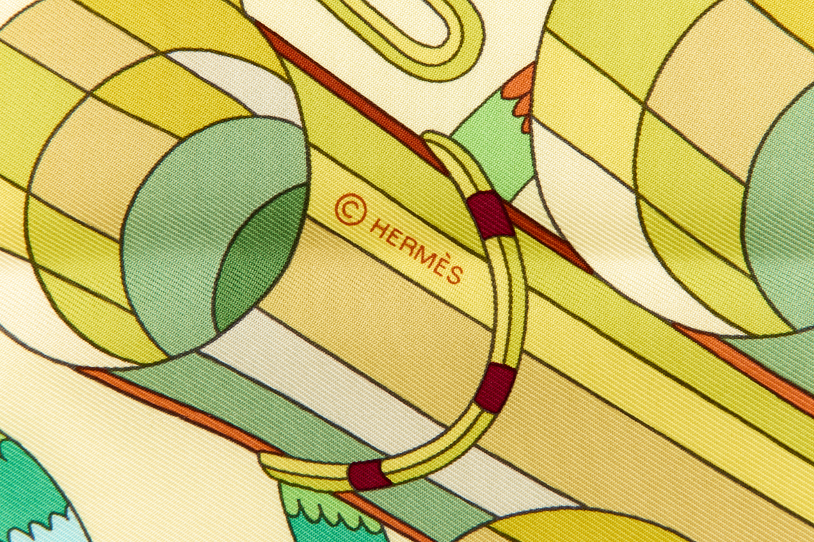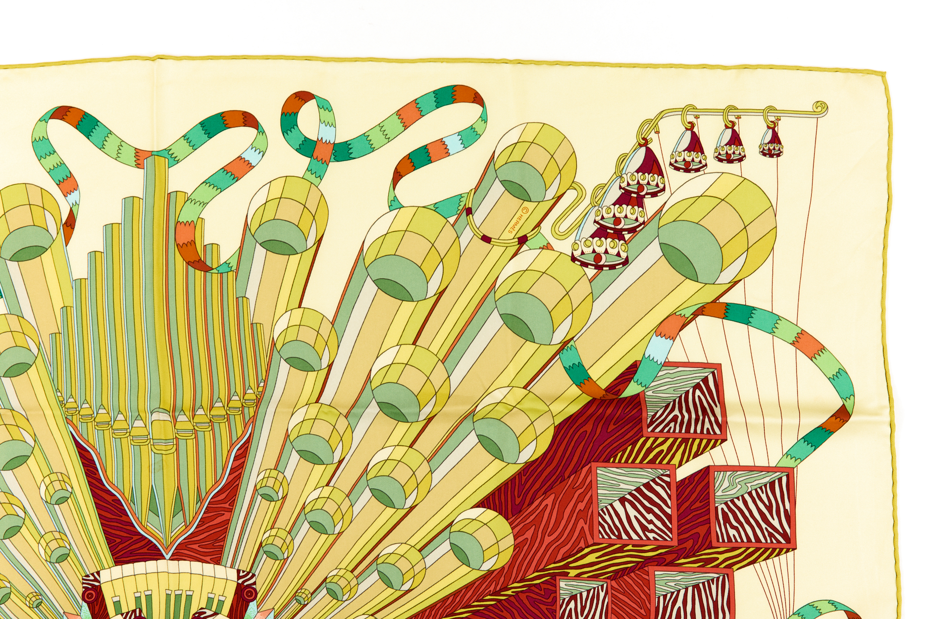 Hermes Silk Scarf Carre 90 “Point D’ORGUE” Yellow Silk Scarf