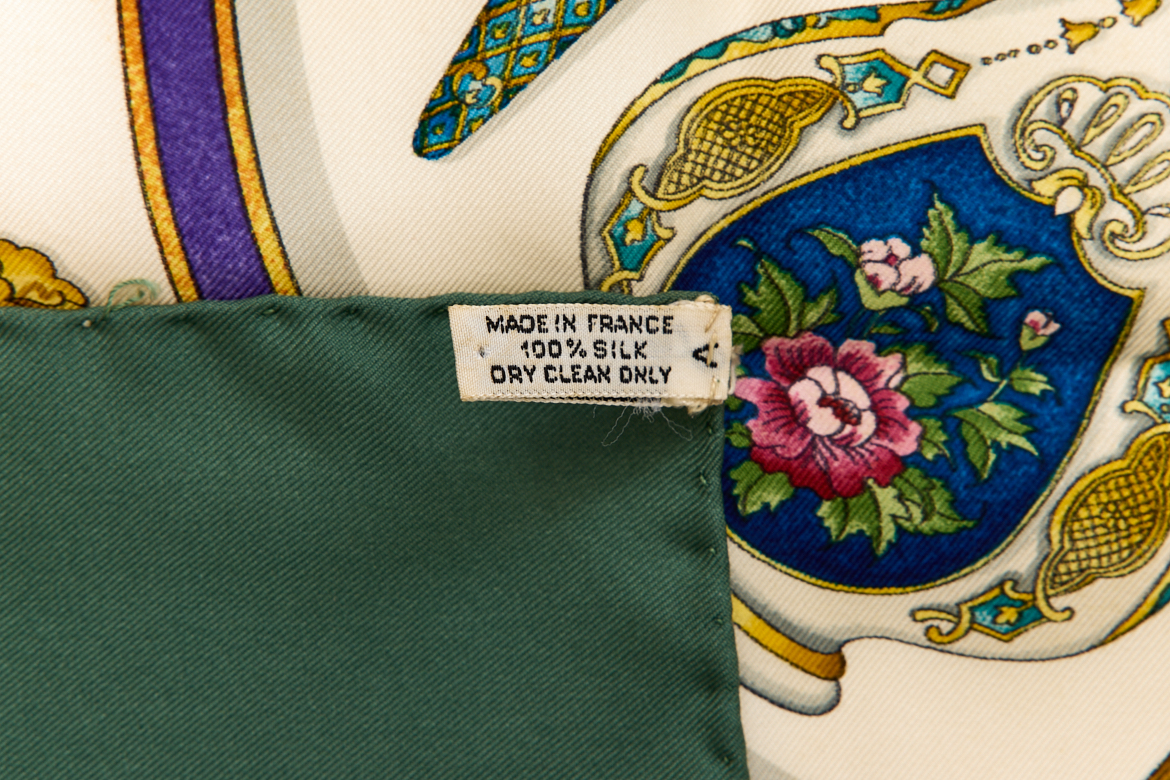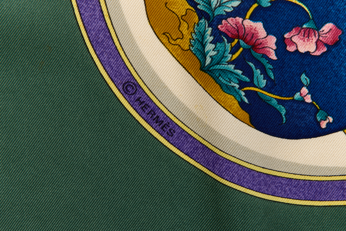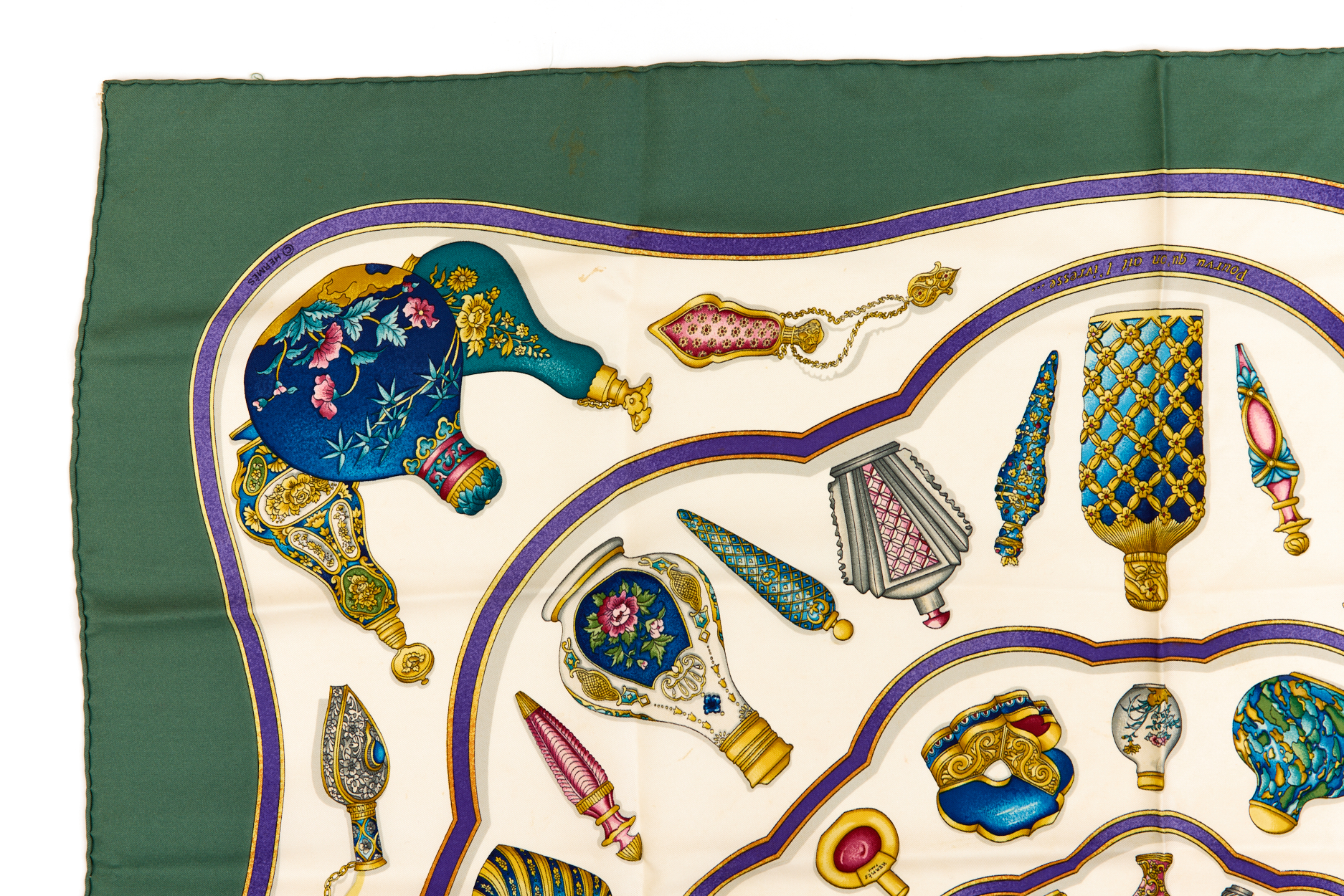 Hermes Silk Scarf Carre 90 “Qu’Importe Le Flacon” Green Silk Scarf