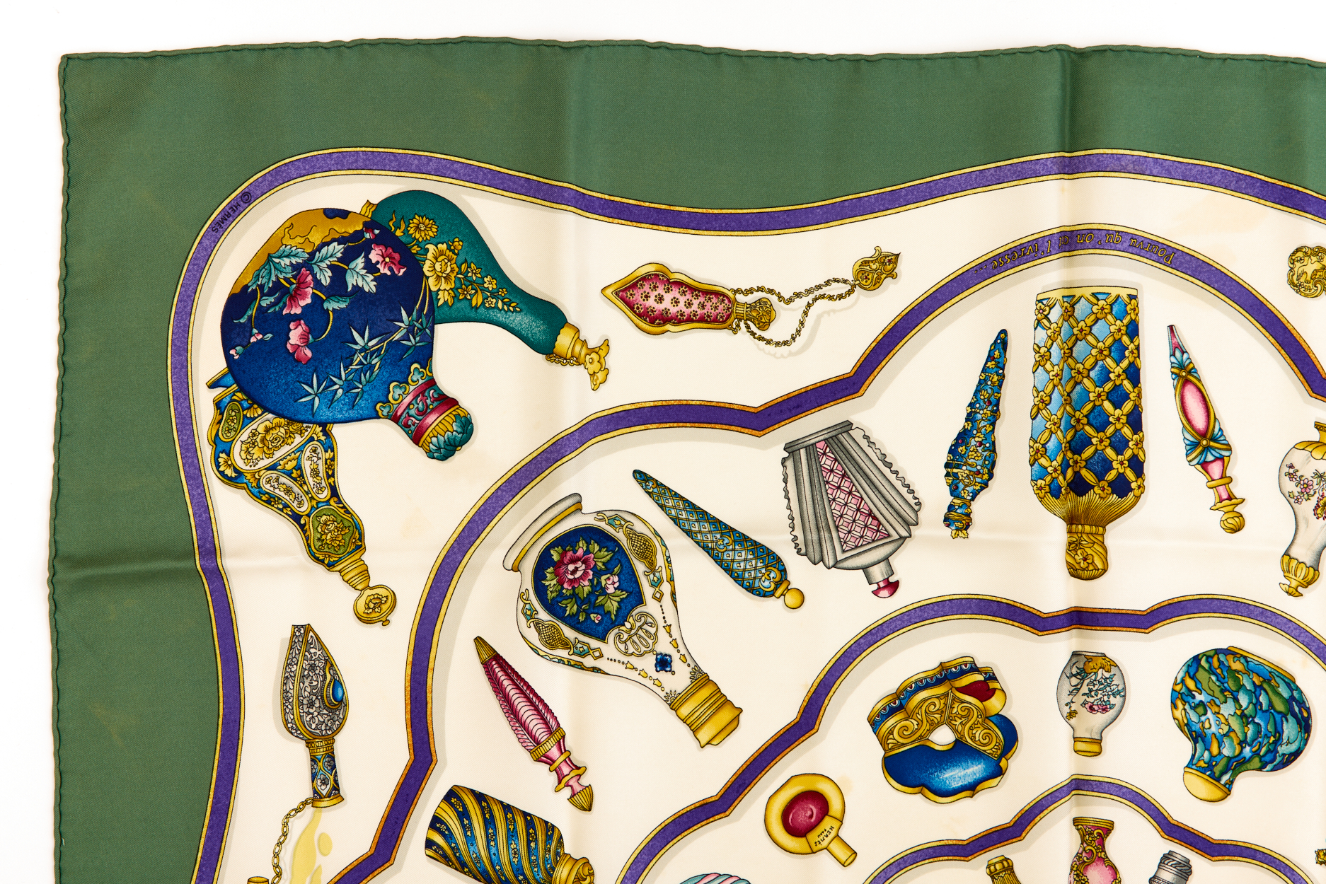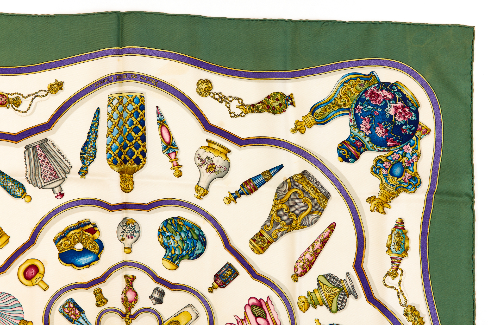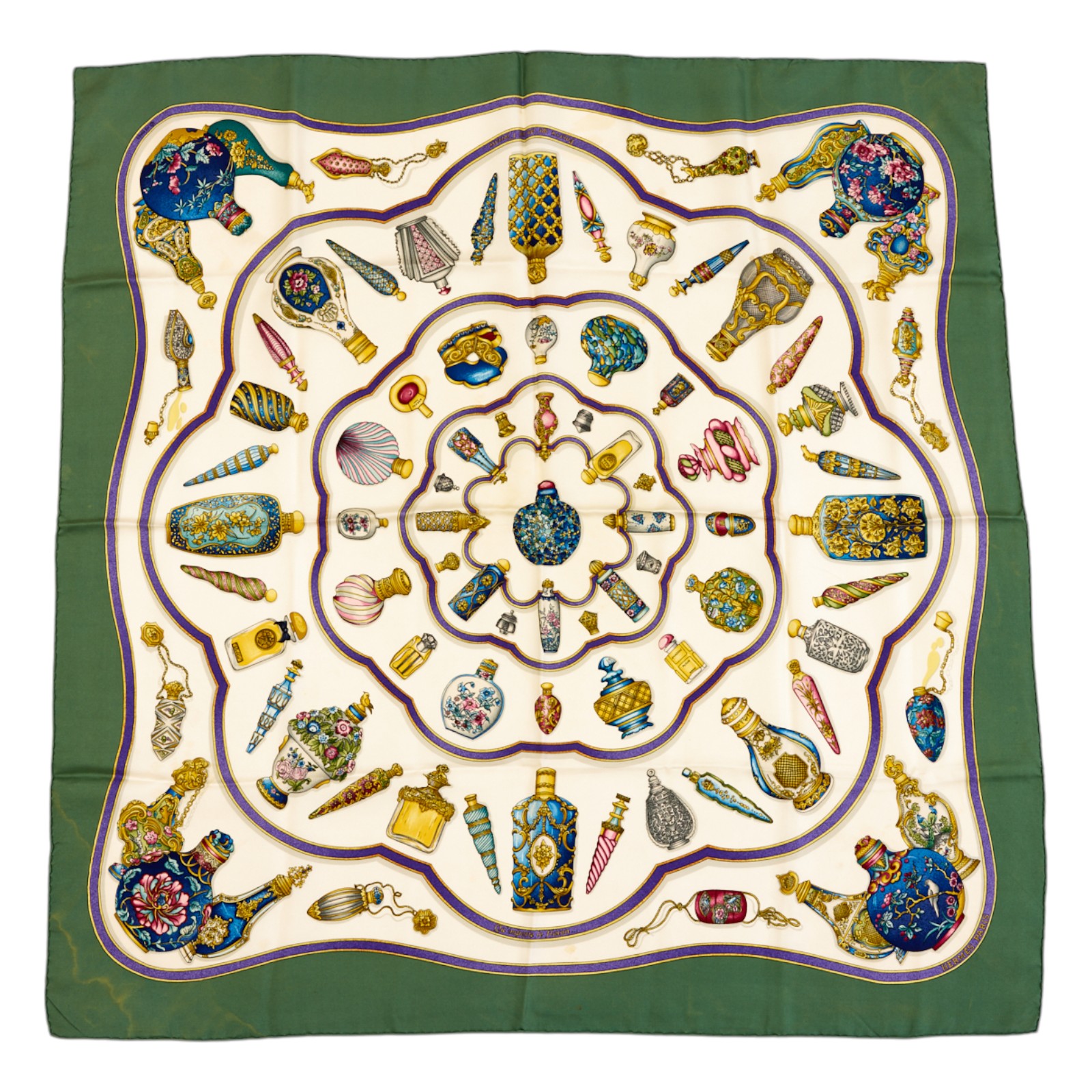 Hermes Silk Scarf Carre 90 “Qu’Importe Le Flacon” Green Silk Scarf