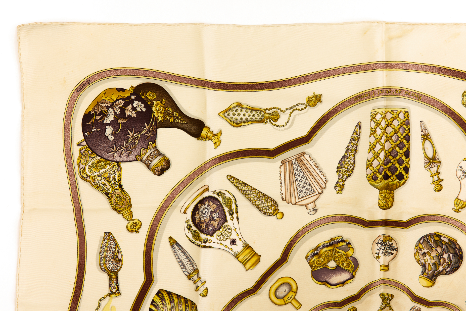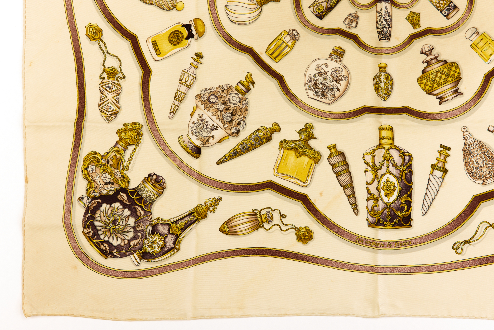 Hermes Silk Scarf Carre 90 “Qu’Importe Le Flacon” Blue Silk Scarf Brand : HERMESDesign by Catherine Baschet Issued 1988Item : ScarfSize : 88.5cm * 88.5cmMaterial : 100% SilkCondition Score: B*For reference. The condition shown in the image takes precedence.*Please see the last two photos to see if the tag is still attached