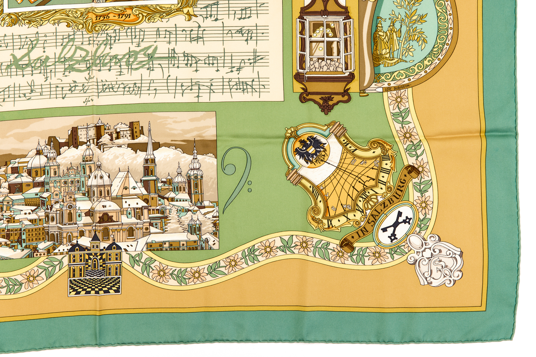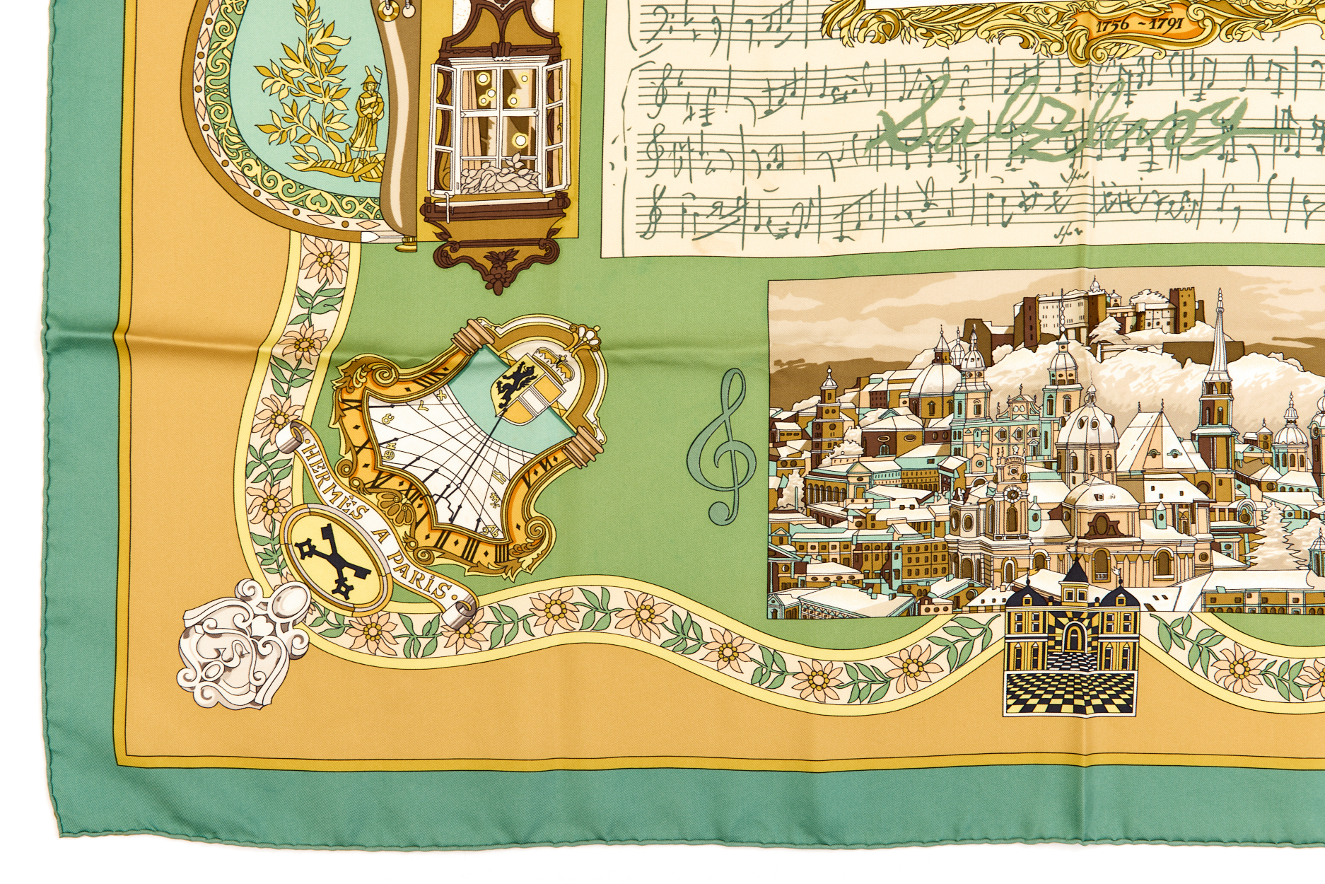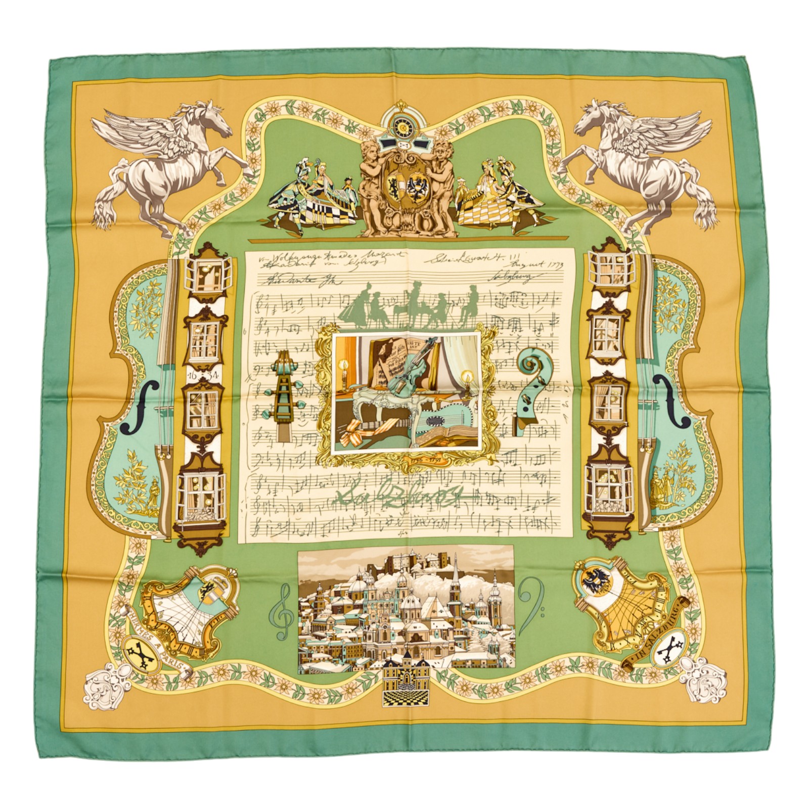 Hermes Silk Scarf Carre 90 “Salzburg” Blue Silk Scarf Brand : HERMESDesign by Loic Dubigeon Issued 1996Item : ScarfSize : 88.5cm * 88.5cmMaterial : 100% SilkCondition Score: B*For reference. The condition shown in the image takes precedence.*Please see the last two photos to see if the tag is still attached