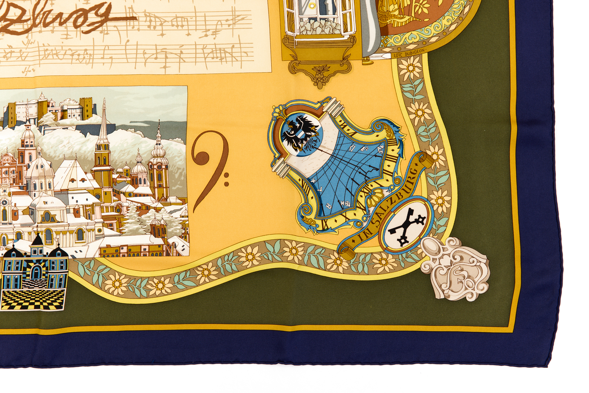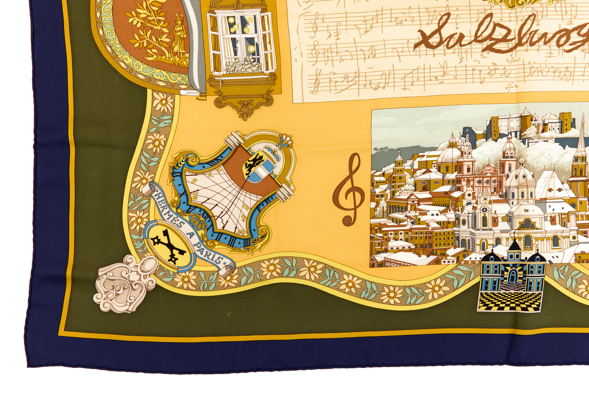 Hermes Silk Scarf Carre 90 “Salzburg” Green Silk Scarf Brand : HERMESDesign by Loic Dubigeon Issued 1996Item : ScarfSize : 88.5cm * 88.5cmMaterial : 100% SilkCondition Score: A-B+*For reference. The condition shown in the image takes precedence.*Please see the last two photos to see if the tag is still attached
