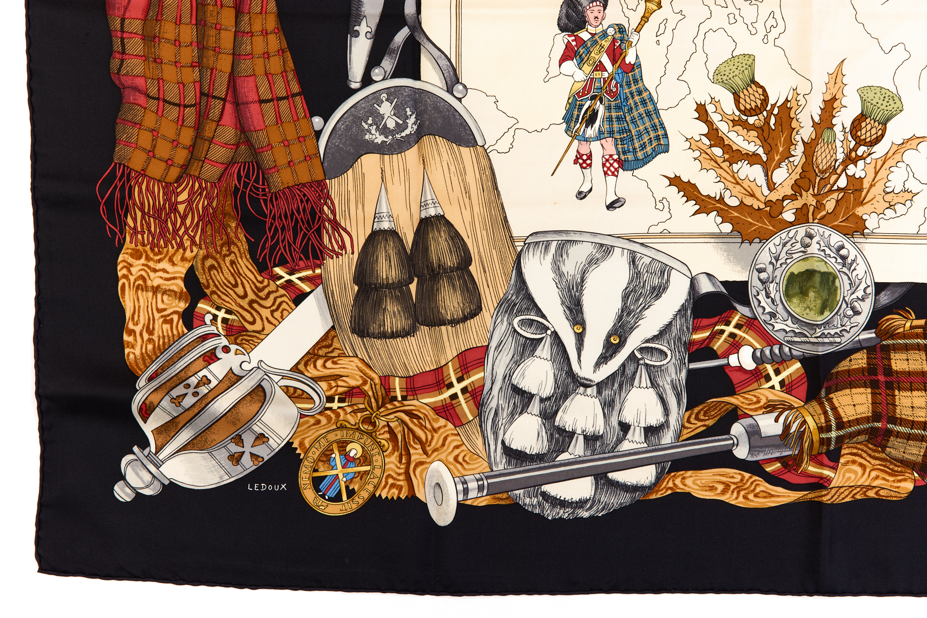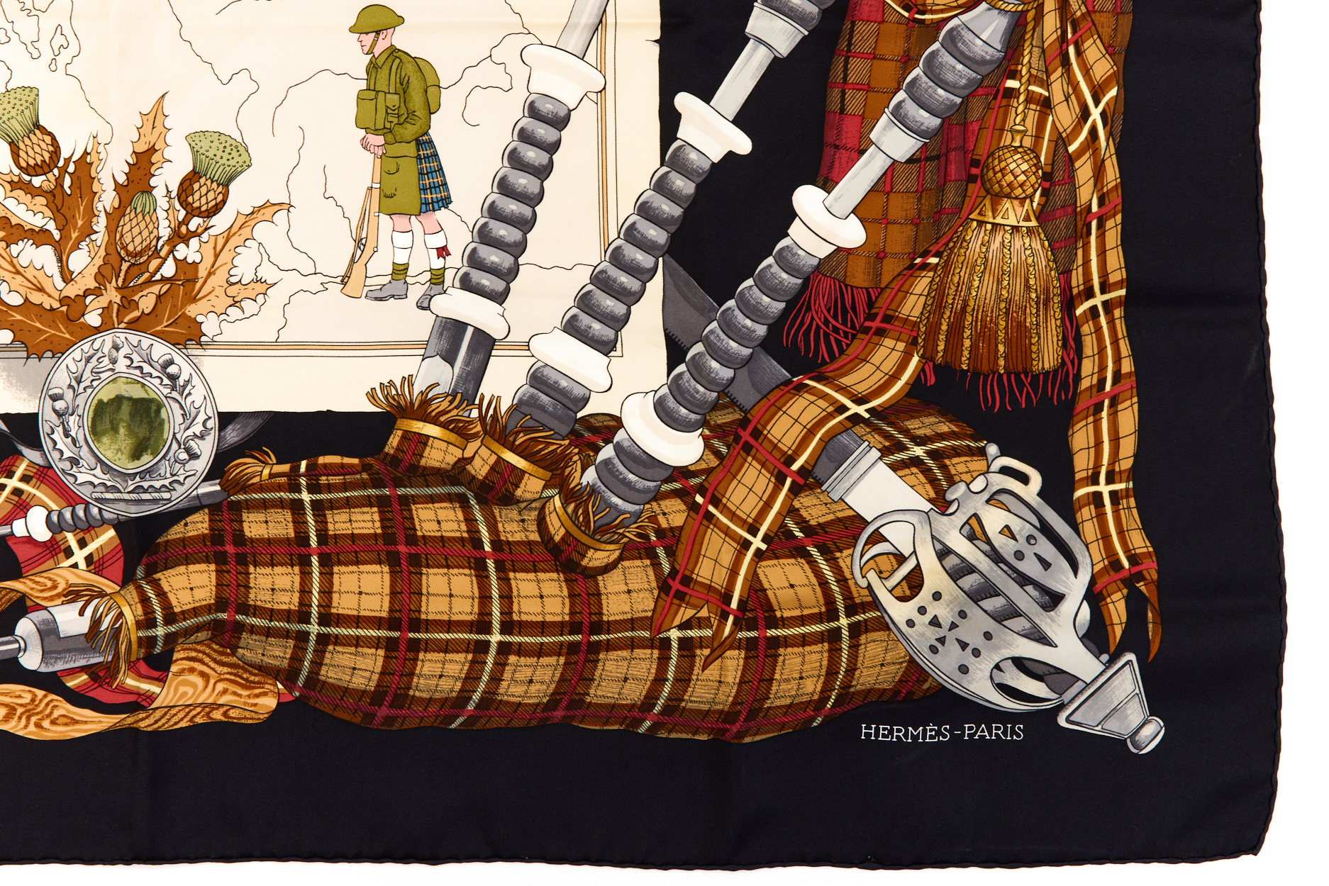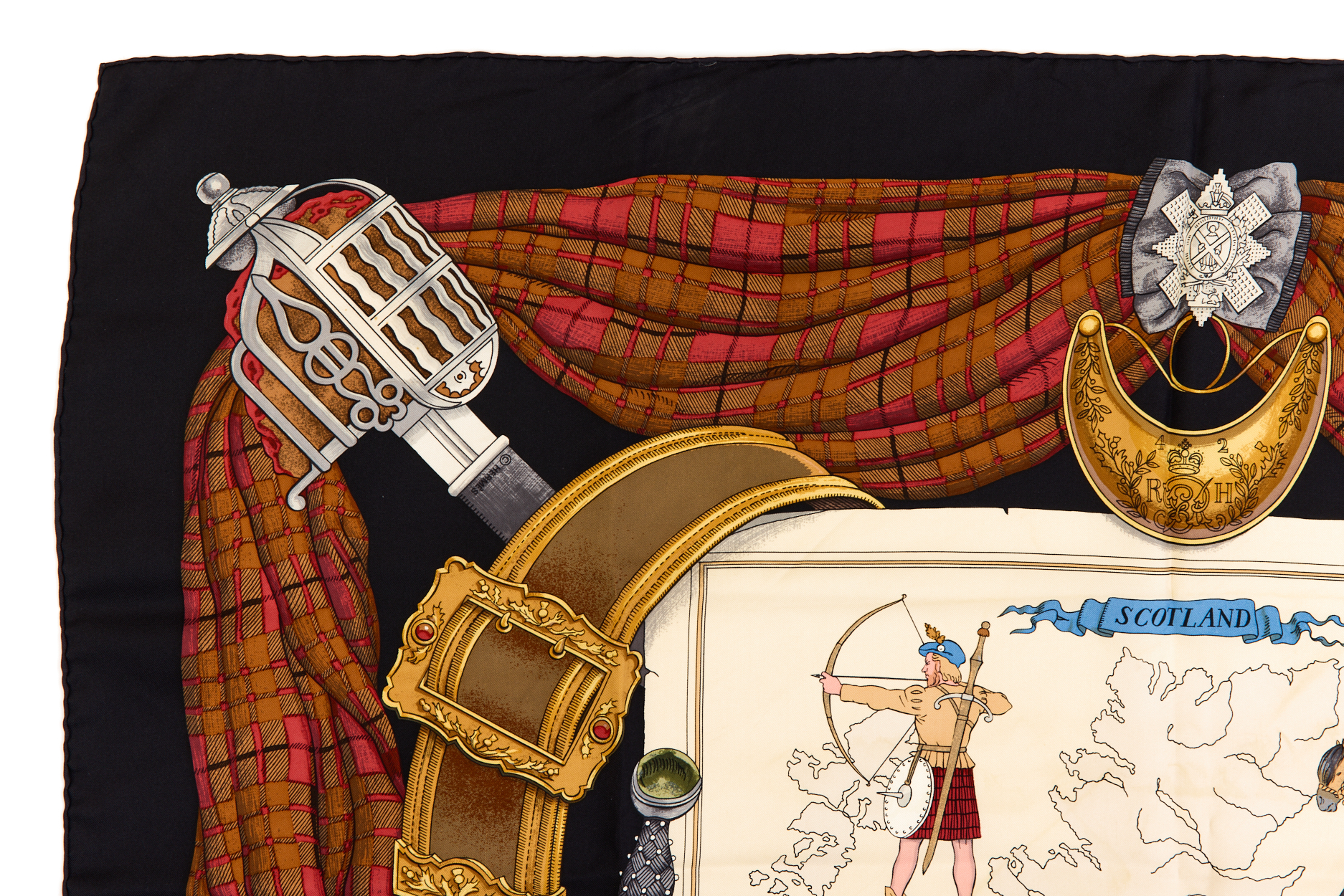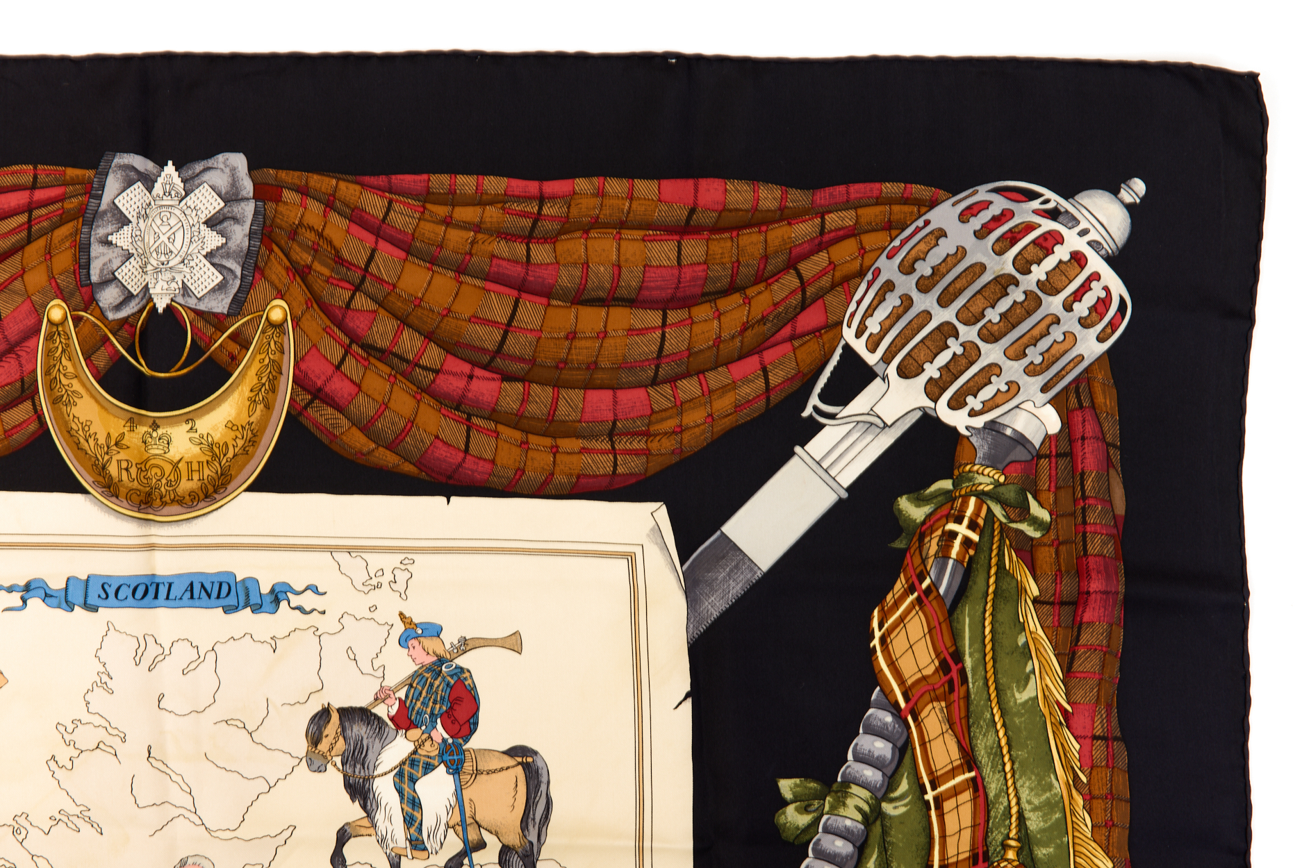 Hermes Silk Scarf Carre 90 “SCOTLAND” Black Silk Scarf
