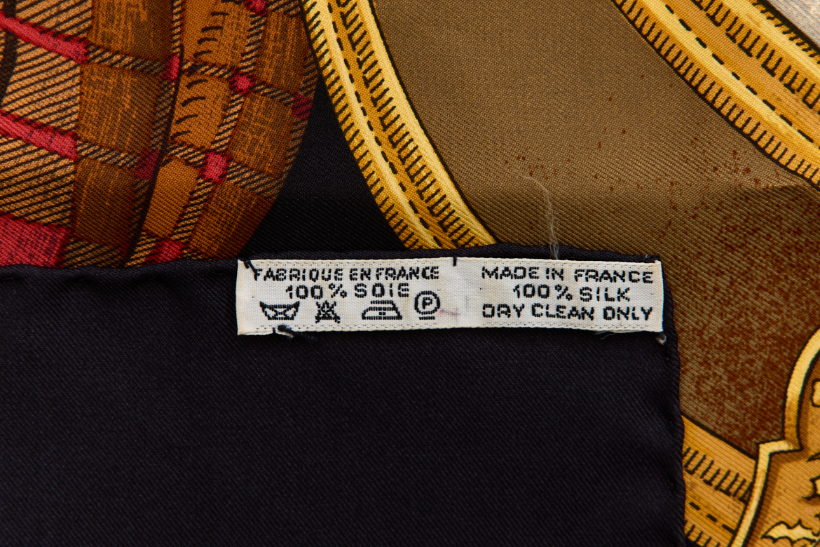 Hermes Silk Scarf Carre 90 “SCOTLAND” Black Silk Scarf Brand : HERMESDesign by Philippe Ledoux Issued 1963Item : ScarfSize : 88.5cm * 88.5cmMaterial : 100% SilkCondition Score: B+*For reference. The condition shown in the image takes precedence.*Please see the last two photos to see if the tag is still attached
