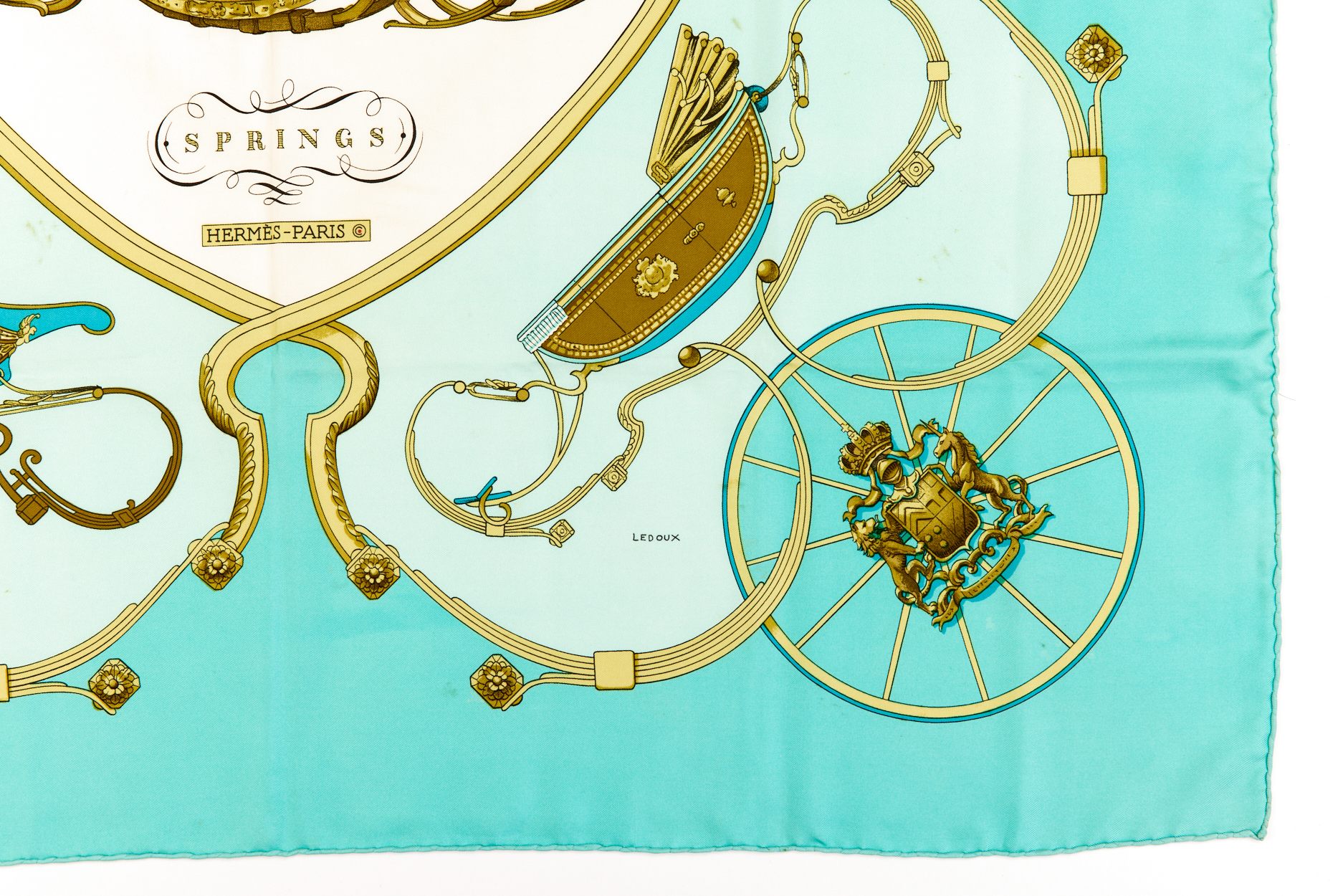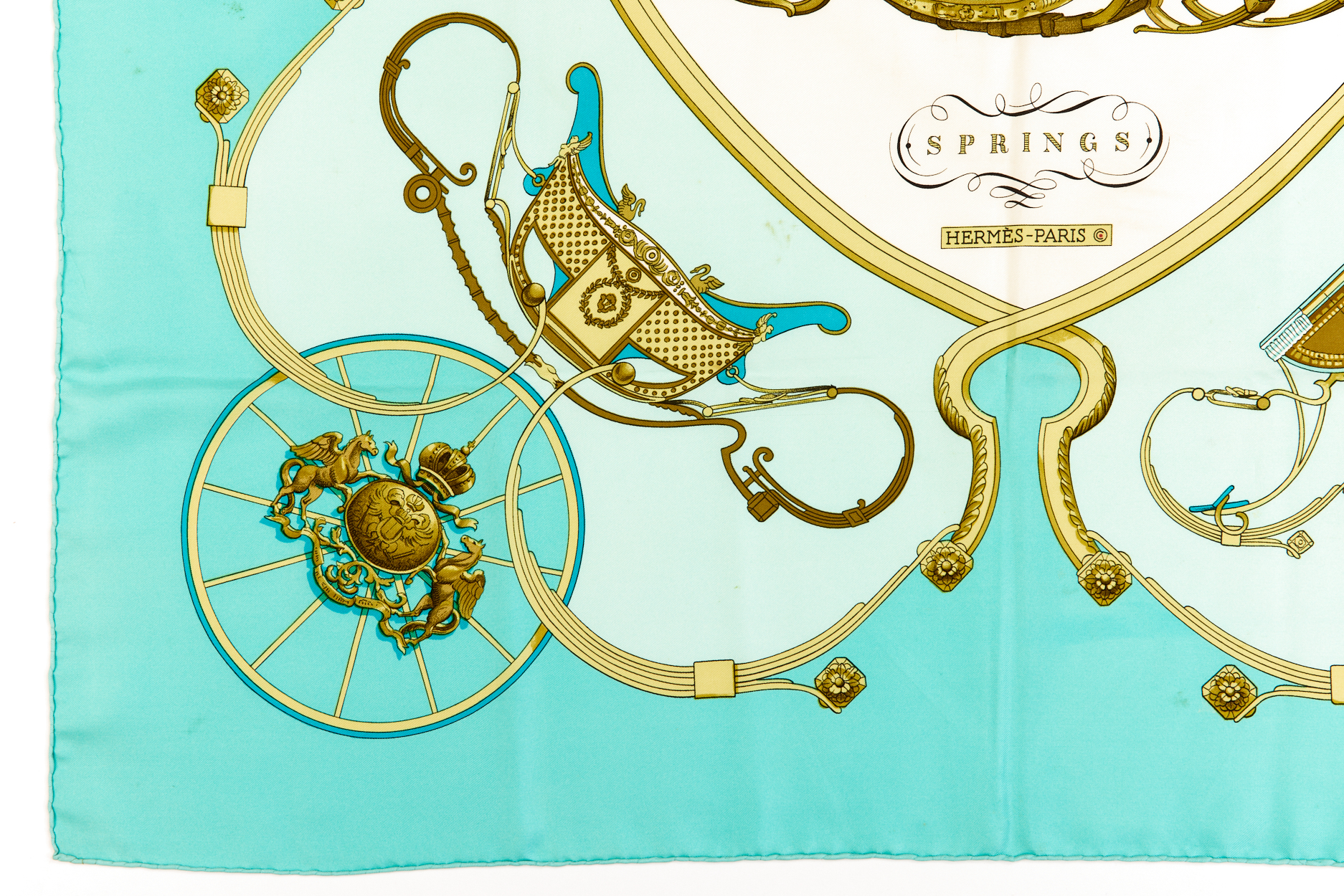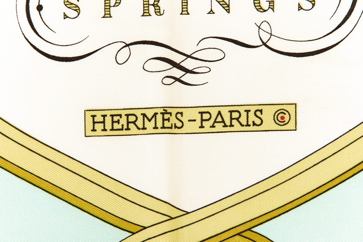 Hermes Silk Scarf Carre 90 “SPRINGS” Blue Silk Scarf