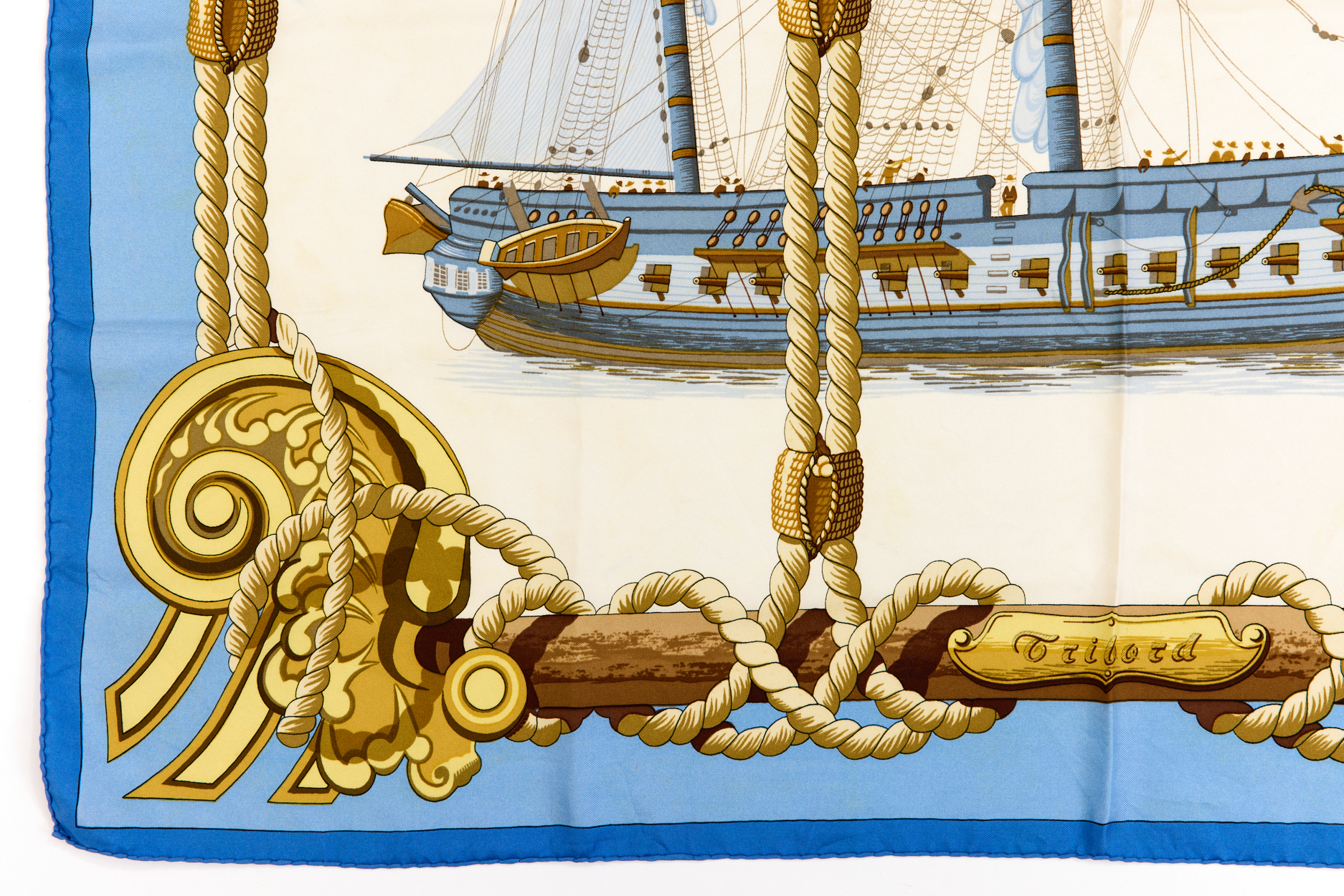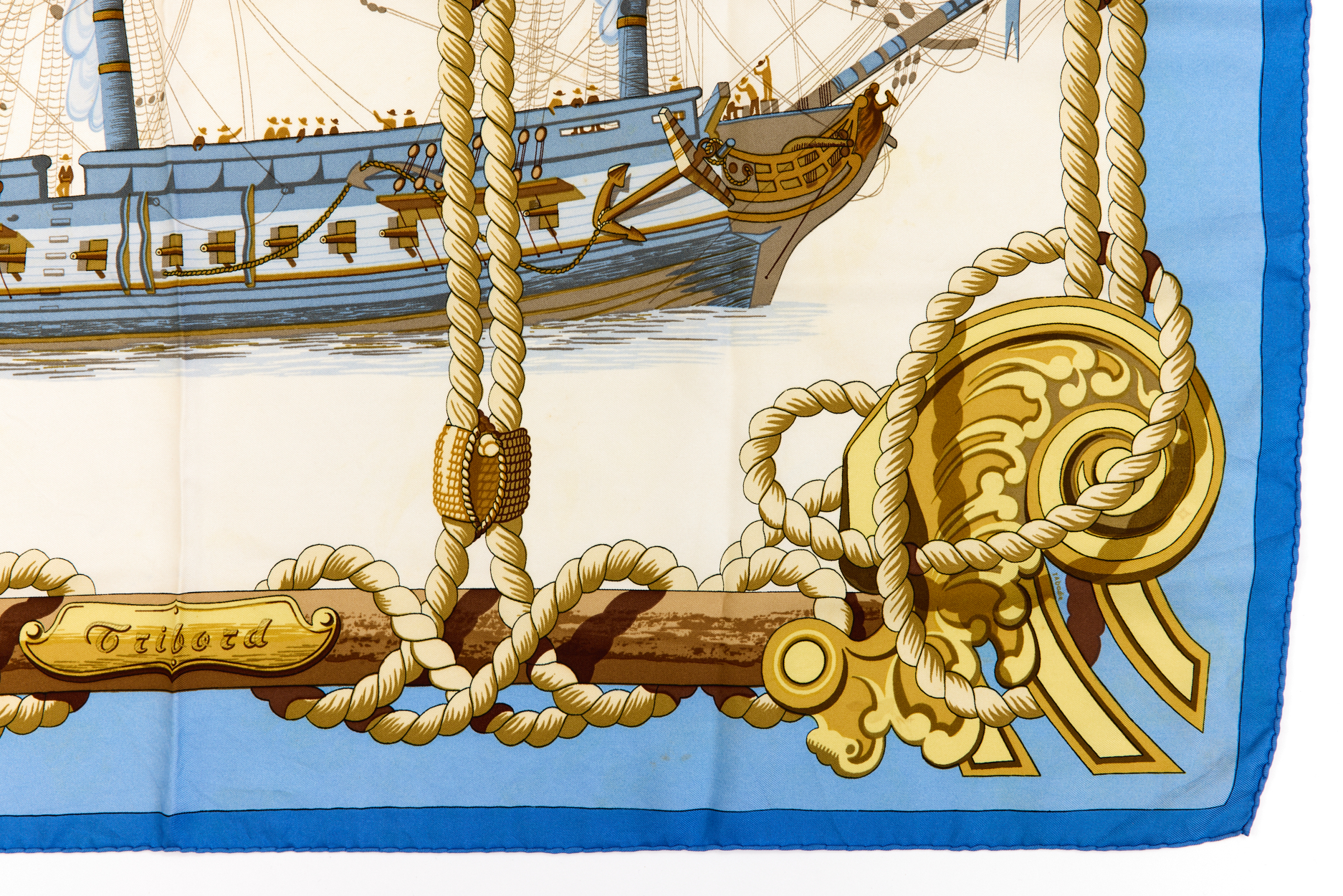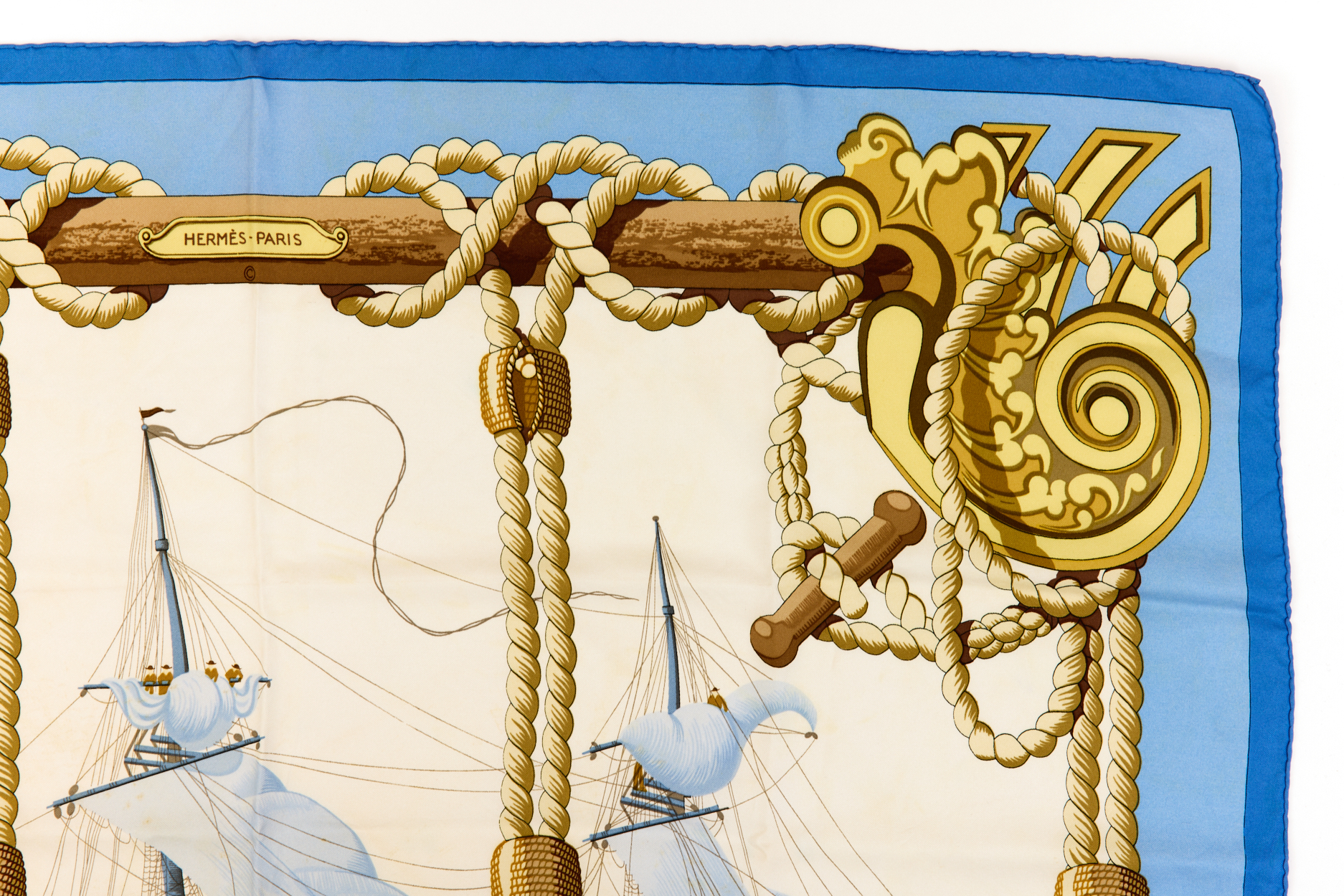 Hermes Silk Scarf Carre 90 “Tribord” Blue Silk Scarf