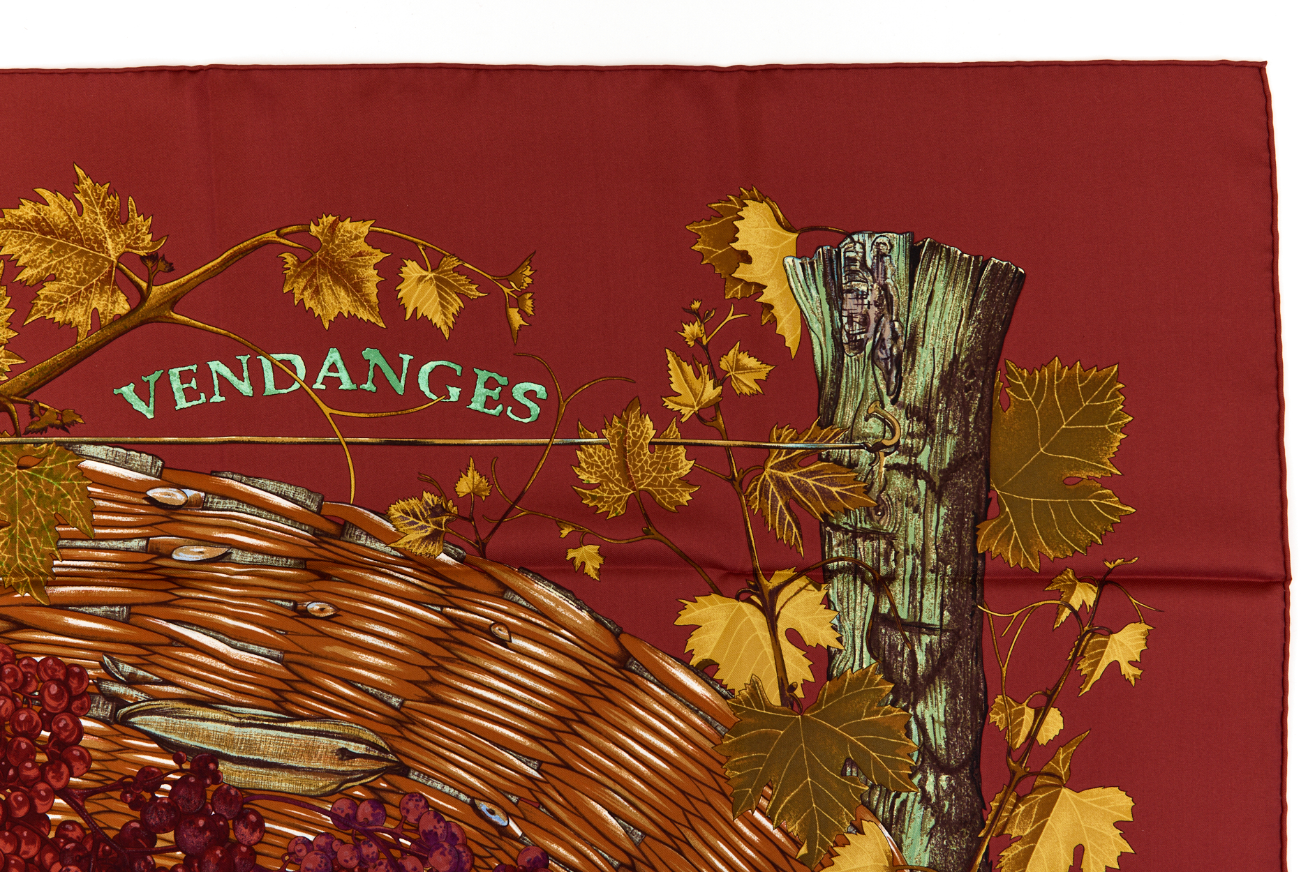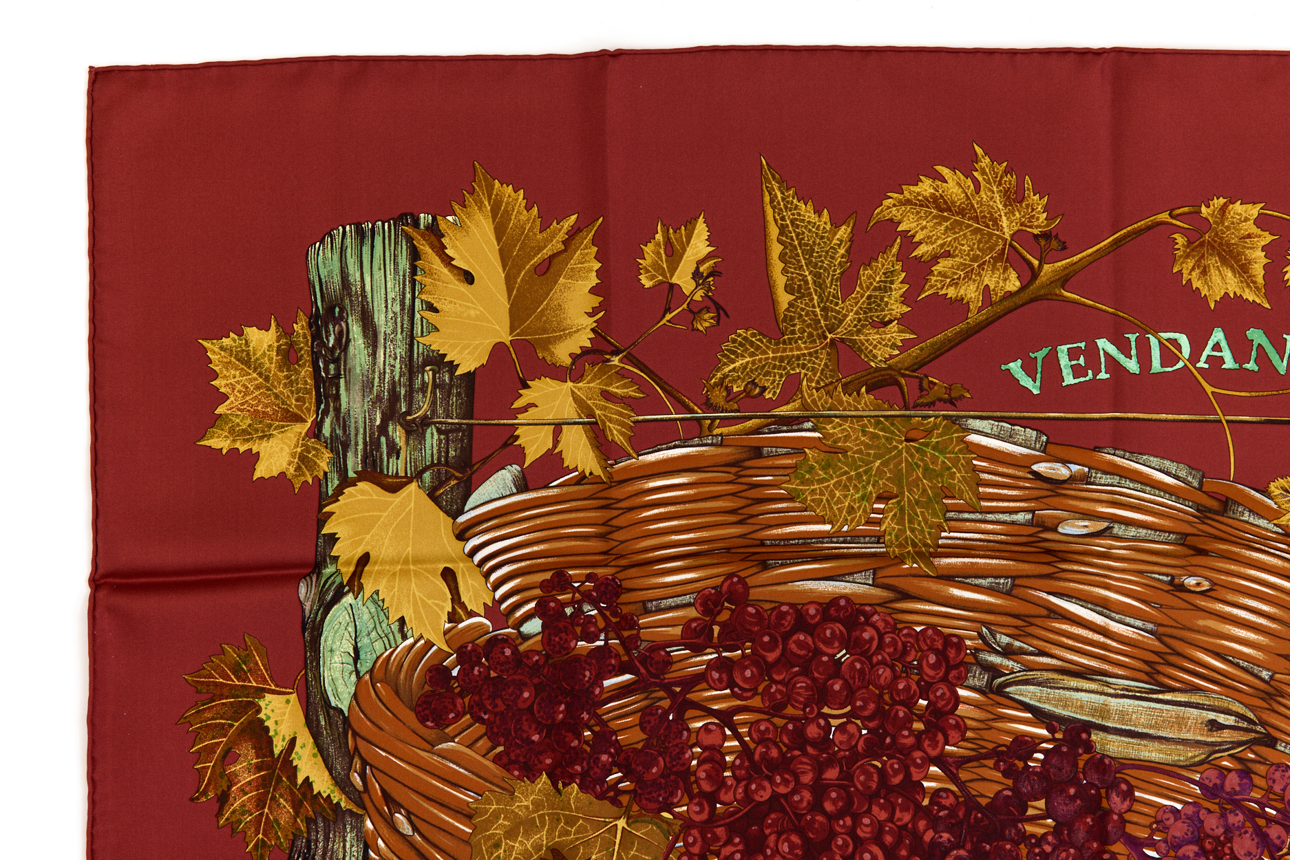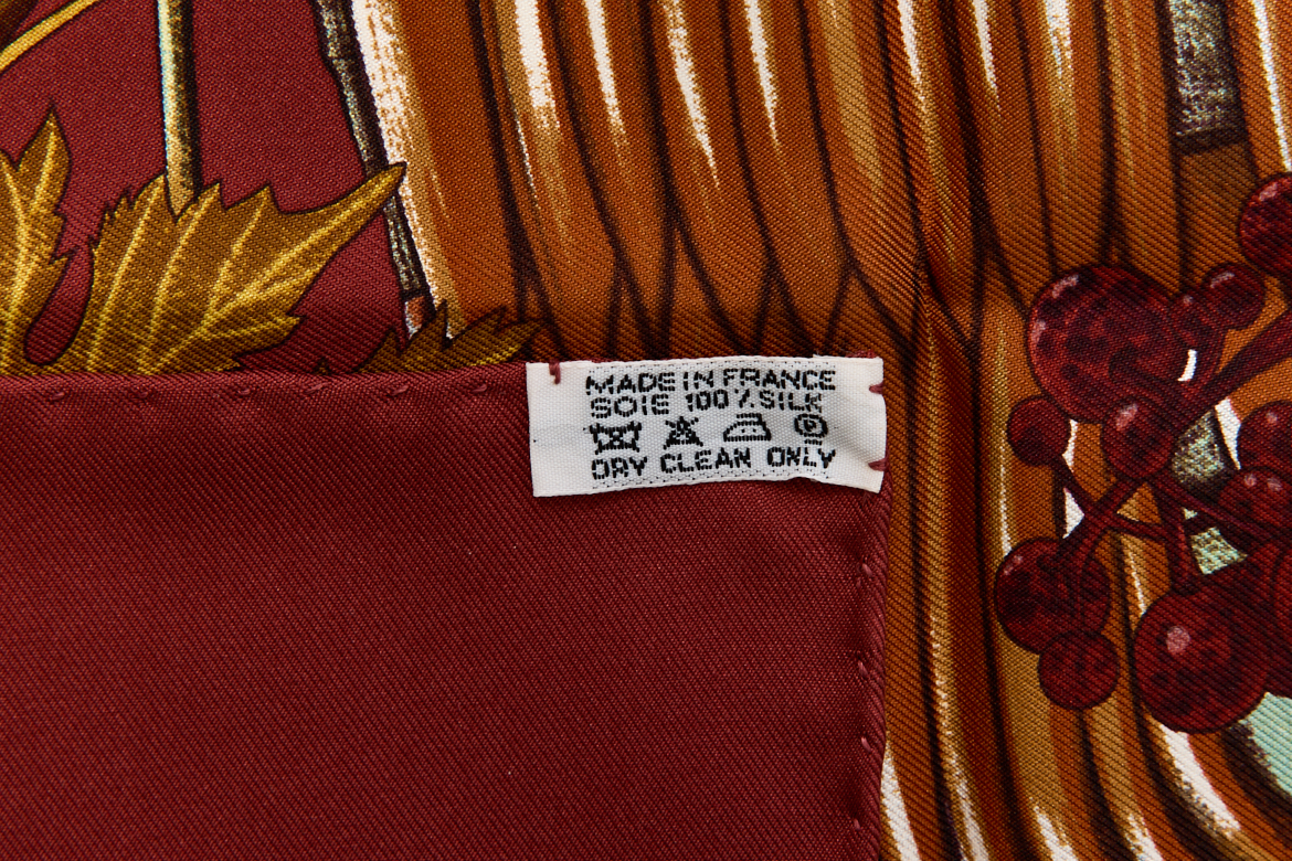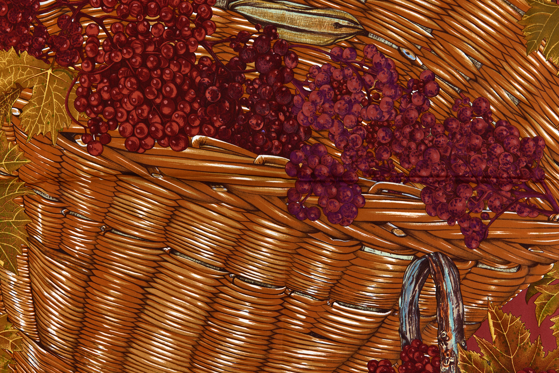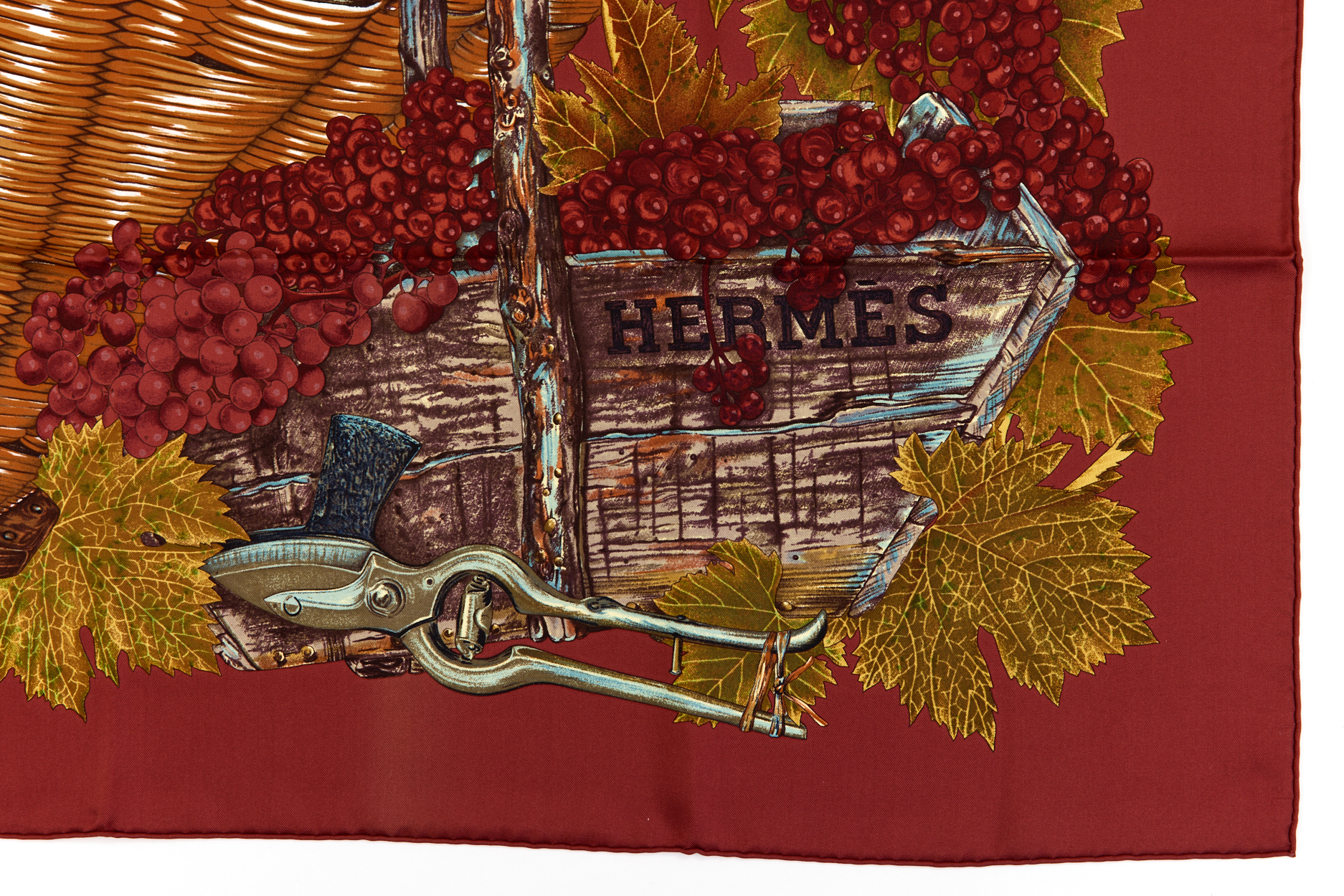 Hermes Silk Scarf Carre 90 “VENDANGES” Brown Silk Scarf
