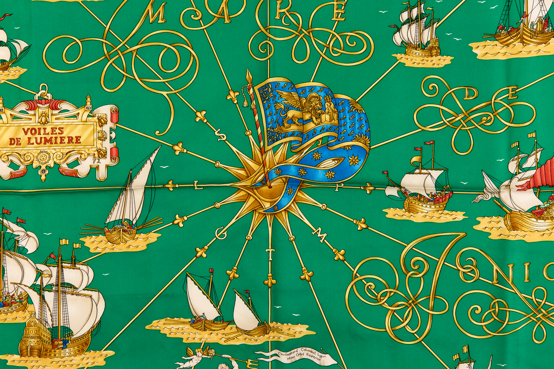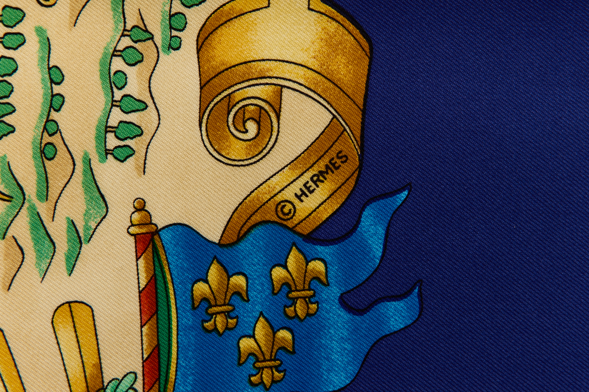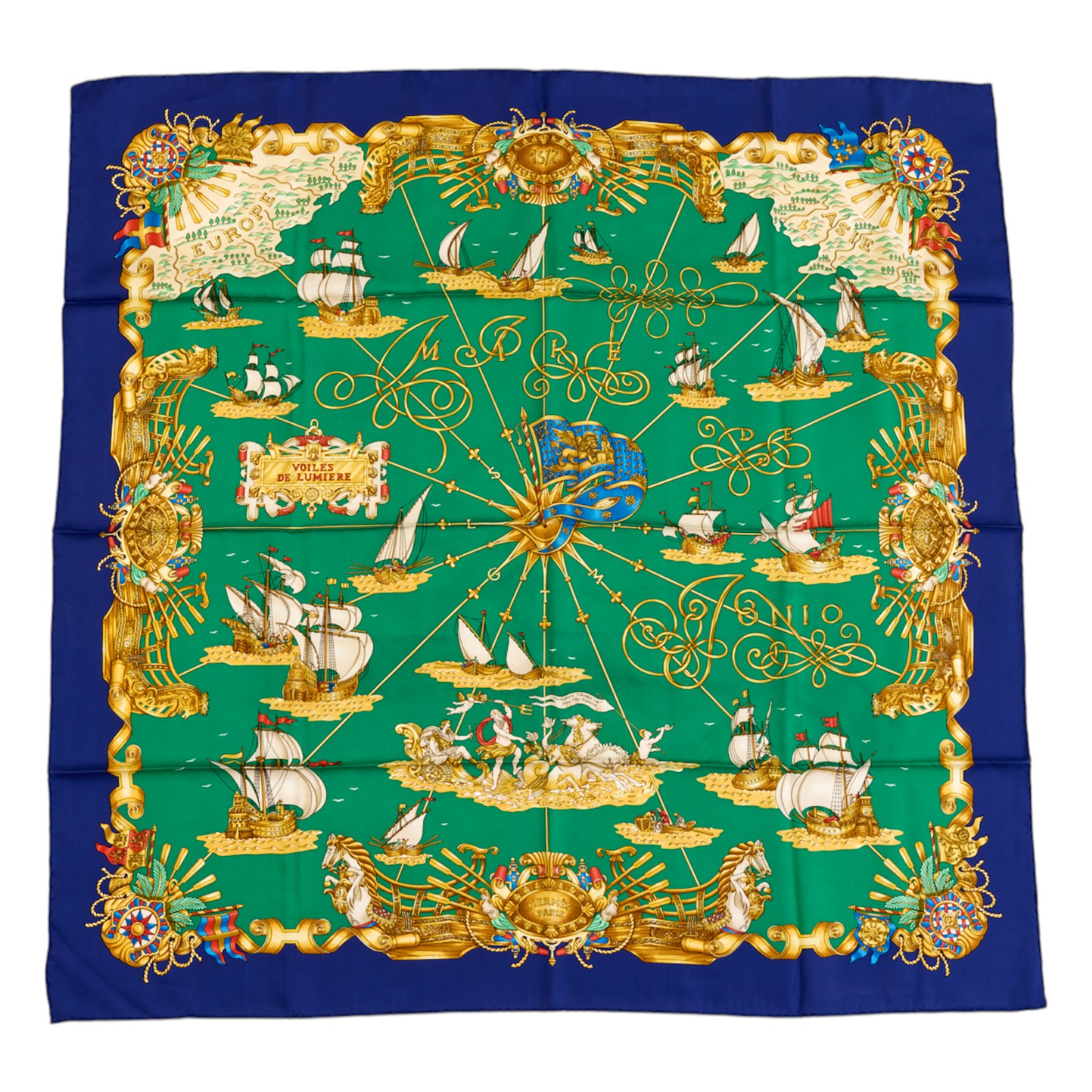 Hermes Silk Scarf Carre 90 “VOILES DE LUMIERE” Blue Silk Scarf Brand : HERMESDesign by Joachim Metz Issued 1995Item : ScarfSize : 88.5cm * 88.5cmMaterial : 100% SilkCondition Score: B+*For reference. The condition shown in the image takes precedence.*Please see the last two photos to see if the tag is still attached