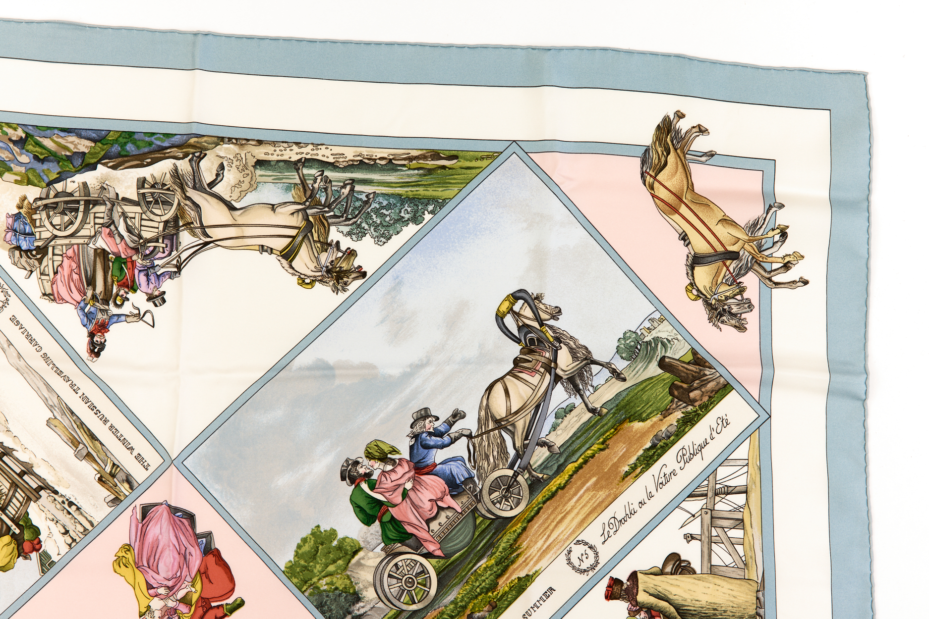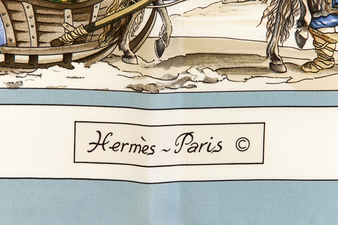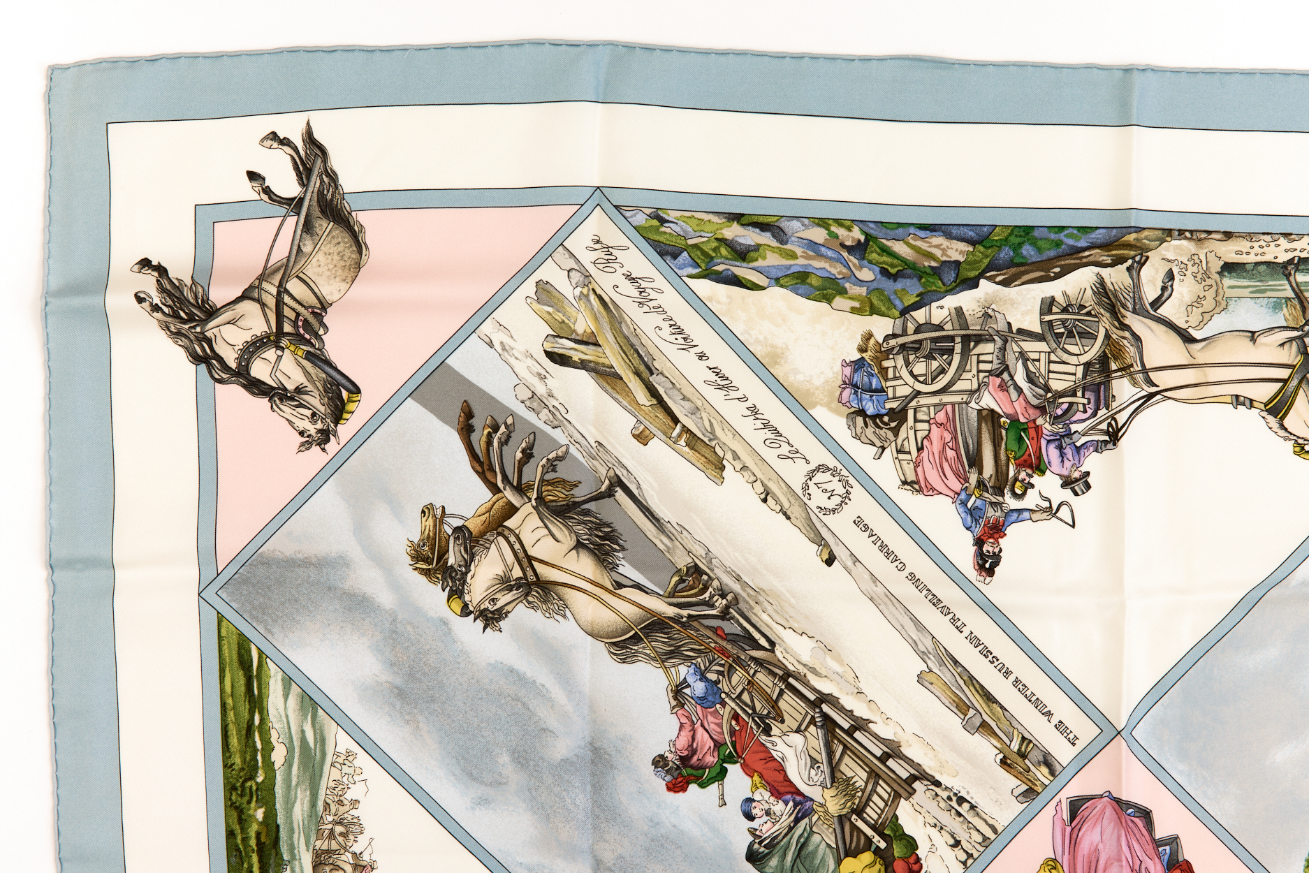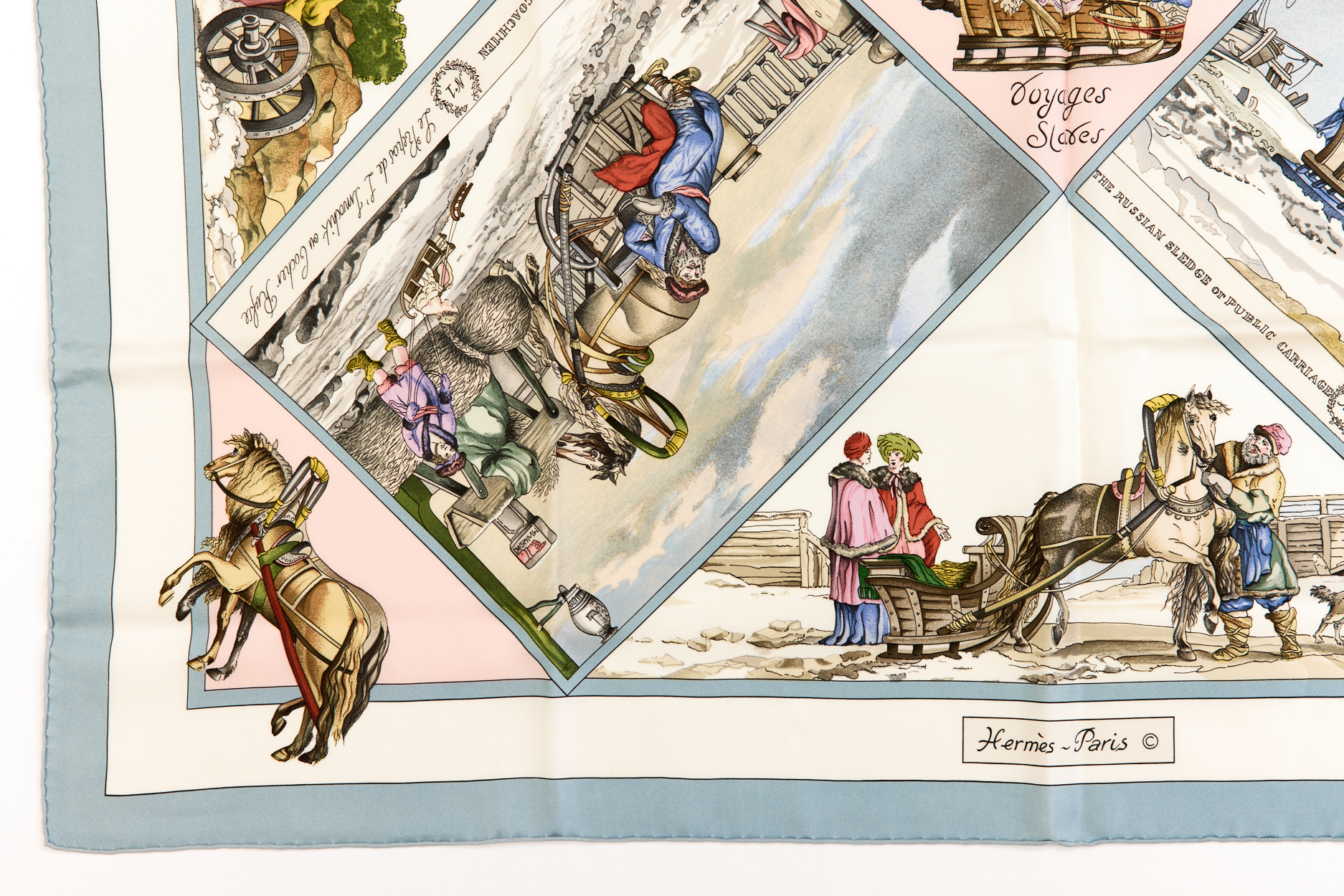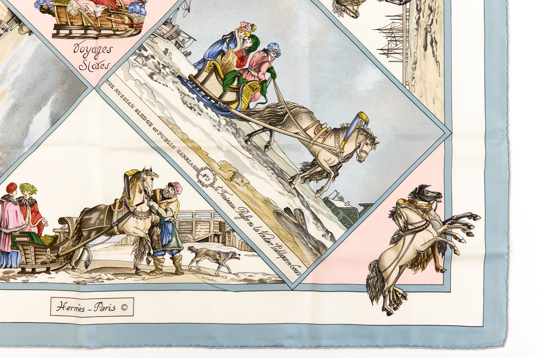 Hermes Silk Scarf Carre 90 “Voyages en Russie” Blue Silk Scarf