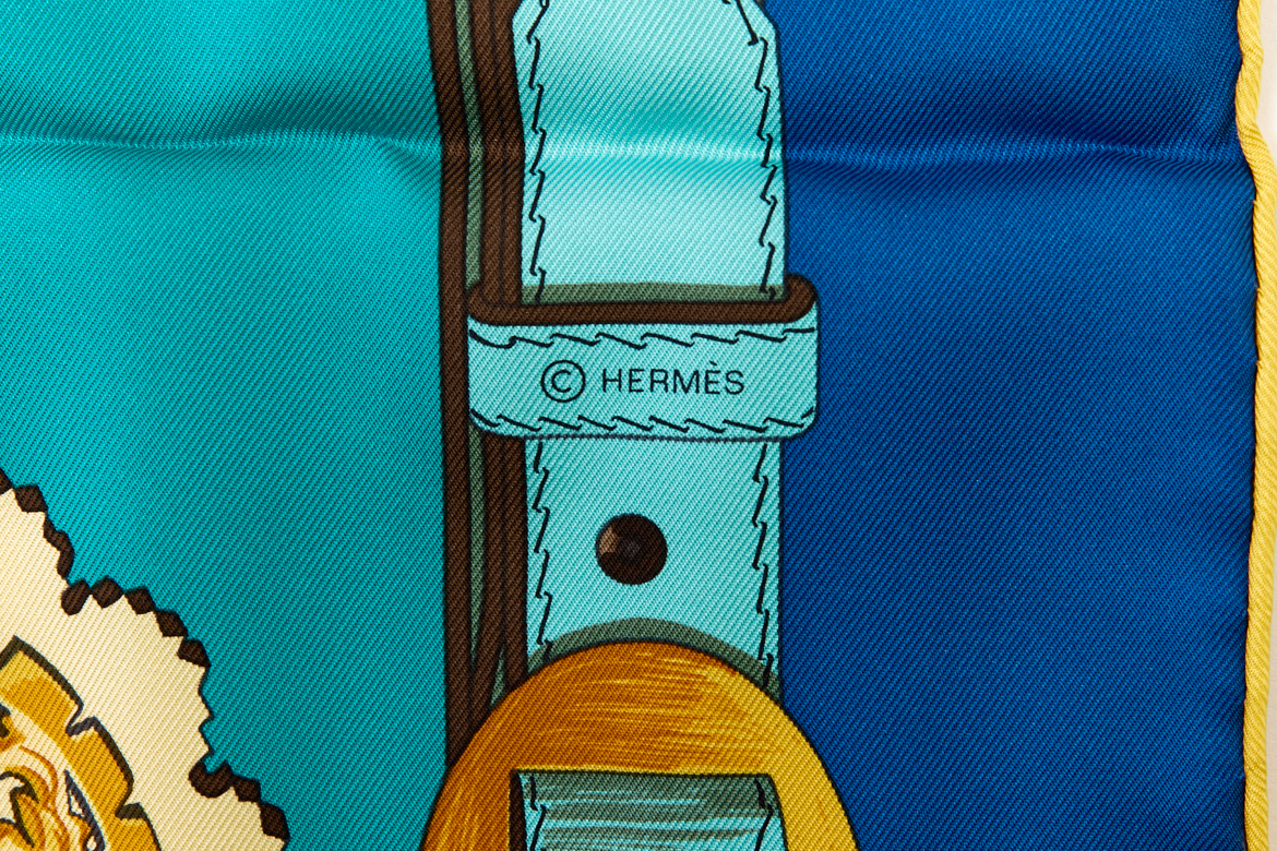 Rare! Hermes Silk Scarf Carre 90 “Cuivreries” Blue Silk Scarf
