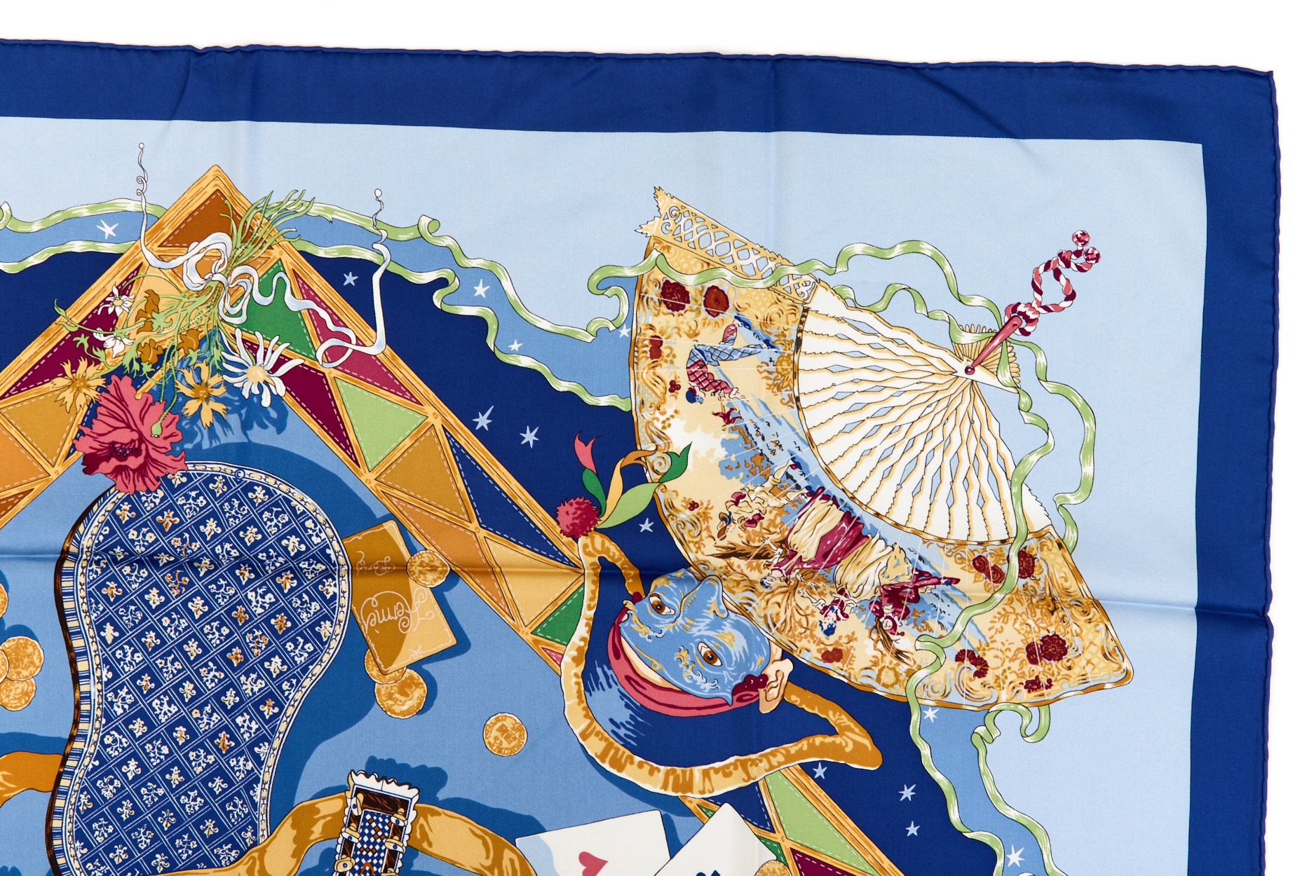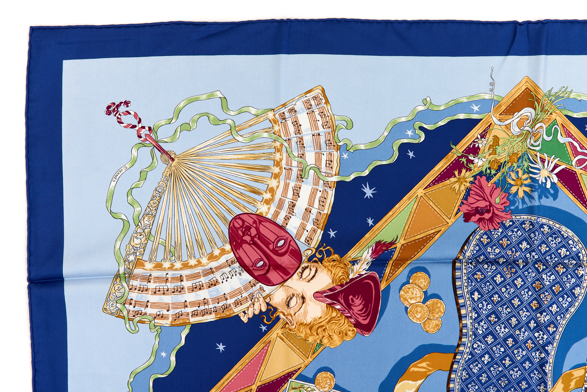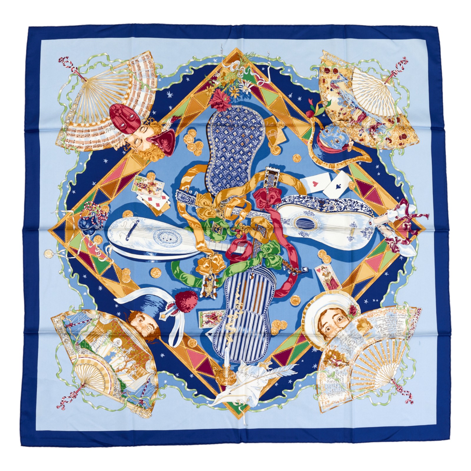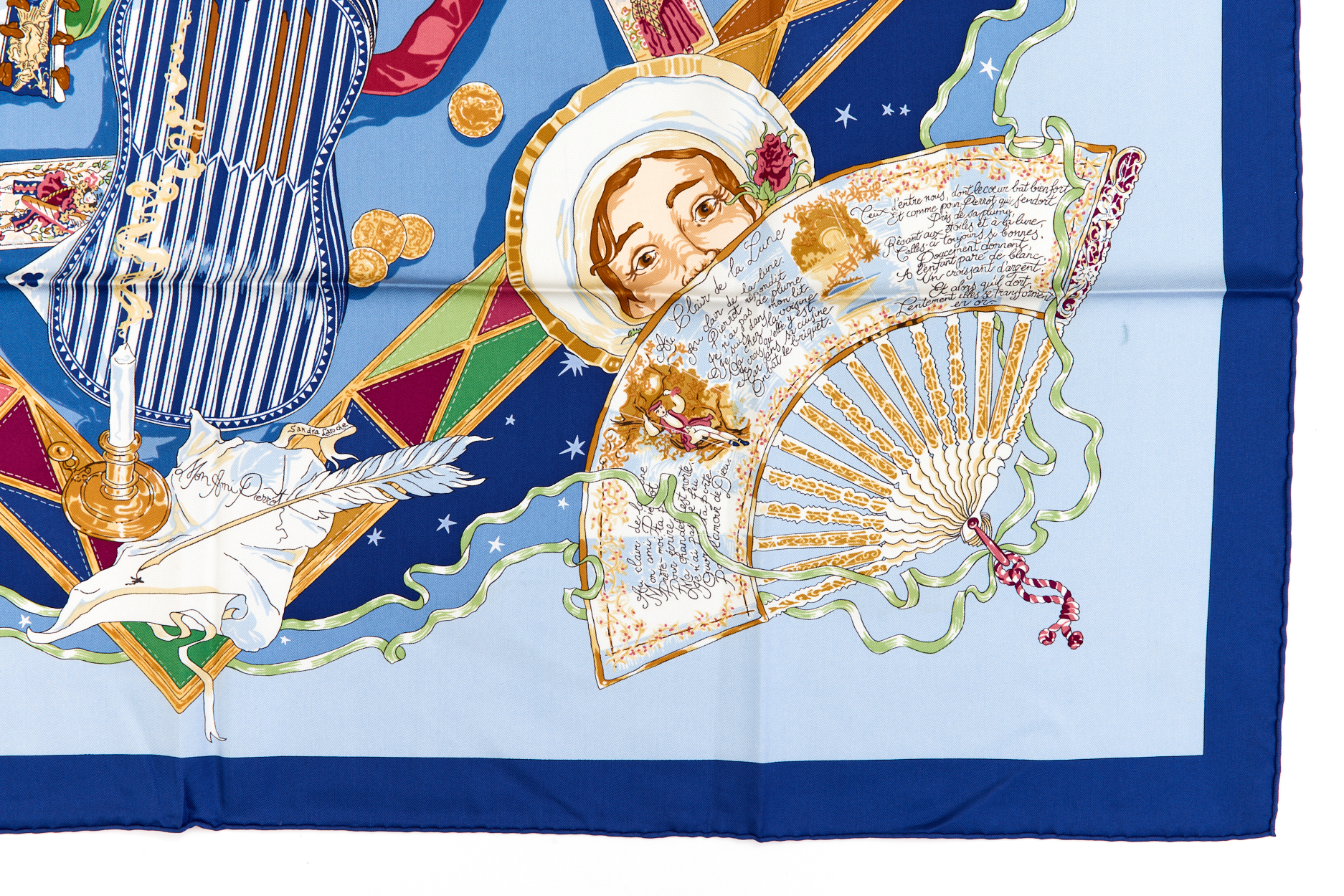 Rare! Hermes Silk Scarf Carre 90 “Mon Ami Pierrot” Blue Silk Scarf